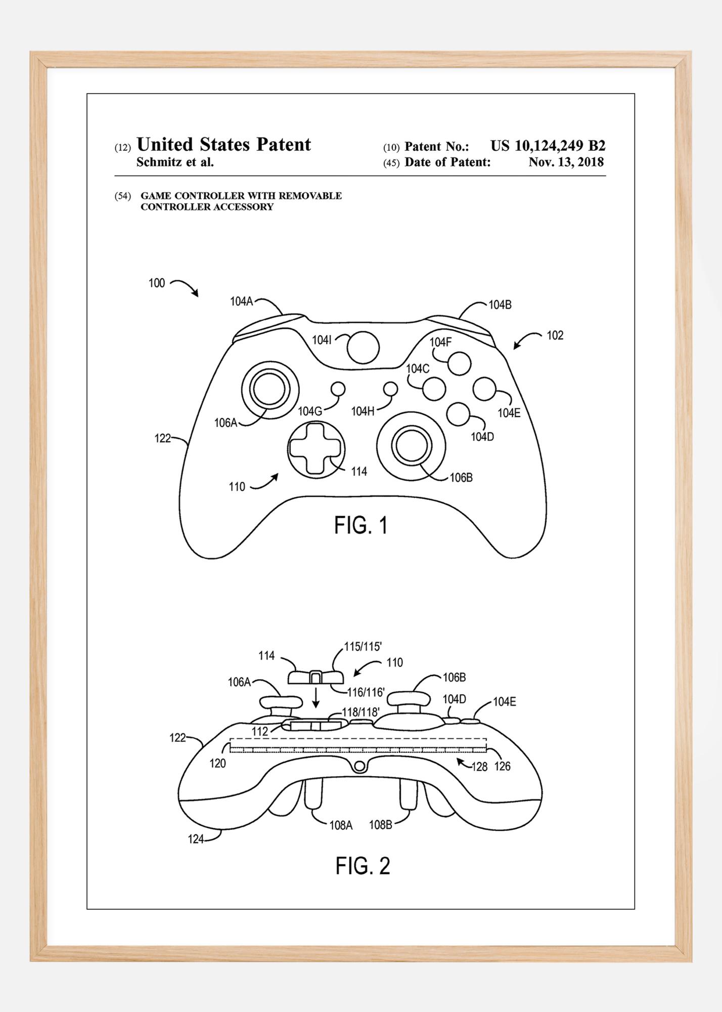 See patendiplakat näitab arenenud Xbox mängukontrollerit eemaldatava lisaseadmega, patendi number US 10,124,249 B2, kuupäevaga 13. november 2018. Disain, mis on esitatud mitmes vaates, avaldab kõrge kohandatavuse ja innovatsiooni taseme mänguriistvaras, andes ülevaate sellest, kuidas interaktiivsust ja mängija kogemust saab parandada tehnilise disaini abil.