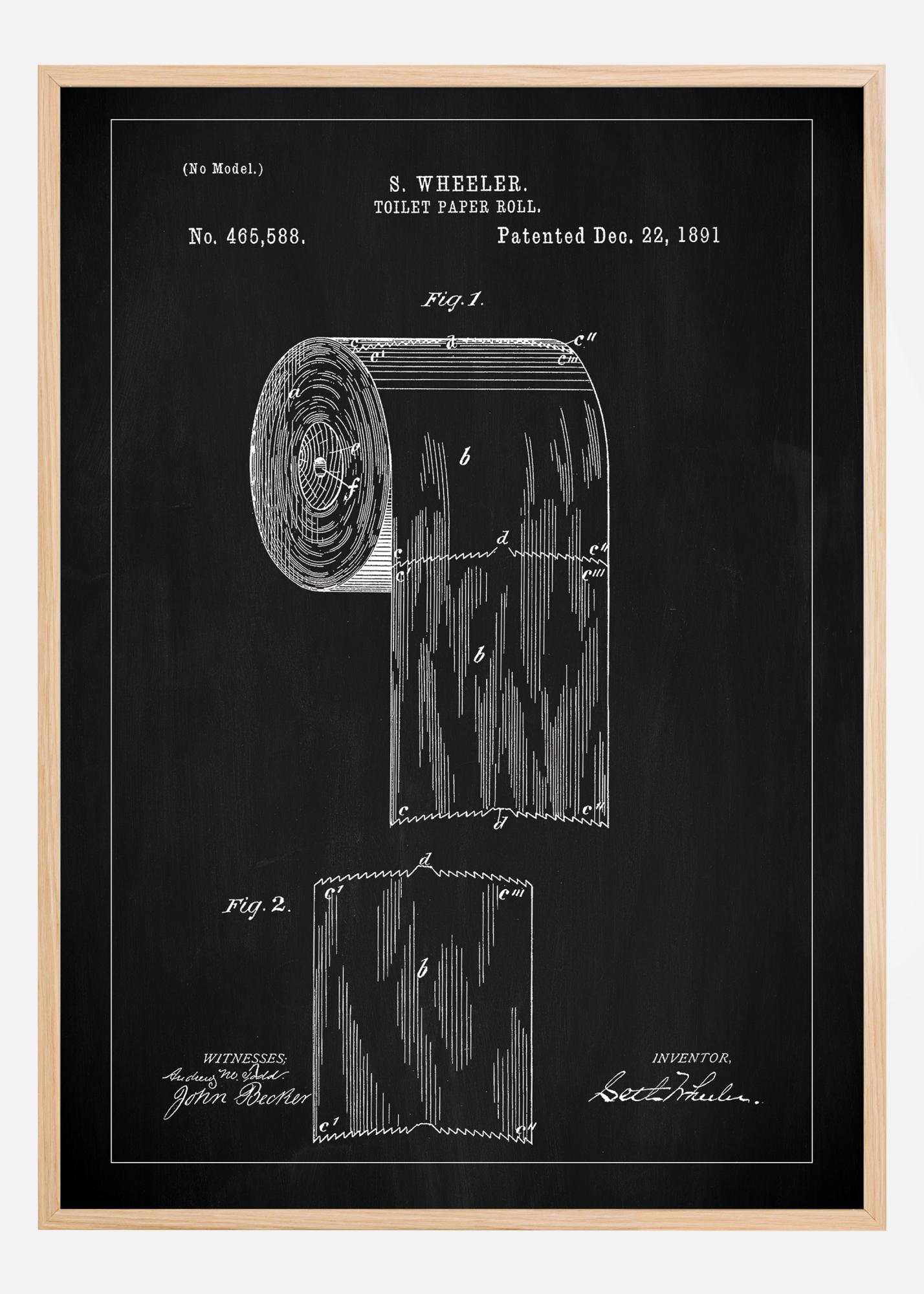 See eristav patendiplakat tutvustab ajatut leiutist, klassikalist tualettpaberi rulli, kasutades selle originaalpatendi joonist 22. detsembrist 1891. Musta tausta ja valgete joonte kontrast annab sellele patendiplakatile elegantse ja kaasaegse välimuse, austades samas igapäevaste esemete geeniuseid mõtteid. See on unikaalne segu kunstist ja ajaloost, mis köidab silma ja sütitab intellektuaalseid vestlusi.