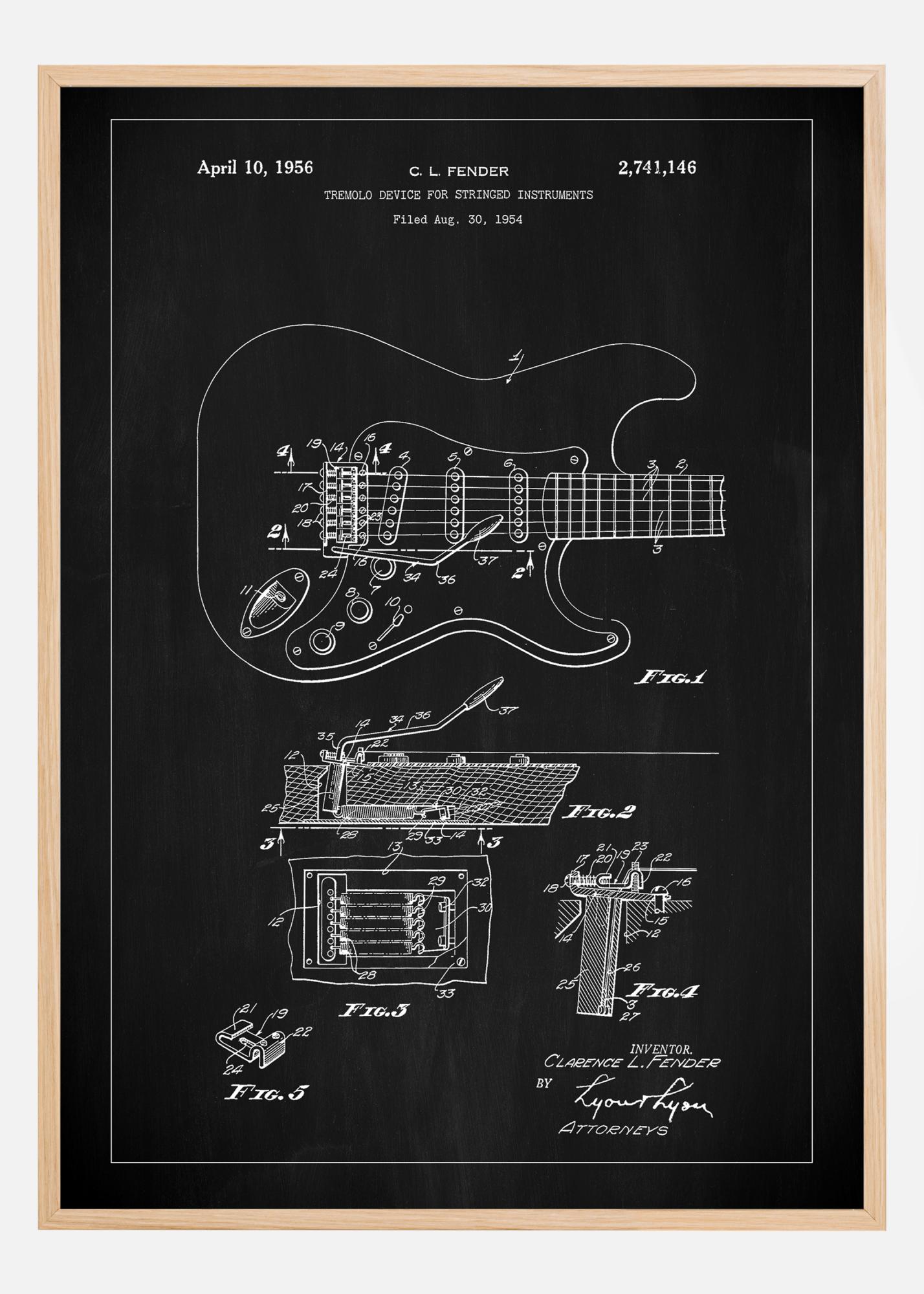 Oma esialgse esitusega klassikalisel mustal tahvlil toob see patentijoonis esile murrangulise disaini, mis muutis kitarride mängimise viisi. Patent, mis esitati esmakordselt 30. augustil 1954, on illustreeritud täpsuse ja hoolikusega, luues kunstiteose, mis on nii informatiivne kui ka inspireeriv. Ideaalne kingitus kitarristidele, muusikaajaloolastele või neile, kes hindavad klassikalist käsitööd, see plakat on garanteeritud hinnatud osa igast kollektsioonist.
