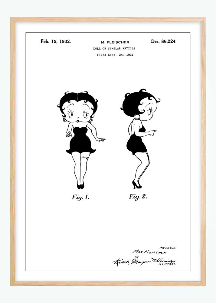 See mänguline ja nostalgiline patentplakat Betty Boopist, mille on kujundanud M. Fleischer, nagu ilmneb Ameerika patendiametist 16. veebruaril 1932 numbriga Des. 86,224. Esitamise kuupäevaga 24. september 1931 kajastab see illustratsioon armastatud mänguasjade disaini ajastut. Plakat, mis näitab nukku kahes erinevas poosis, on vastupandamatu dekoratiivne ese kogujatele või võluv lisand lapse tuppa.
