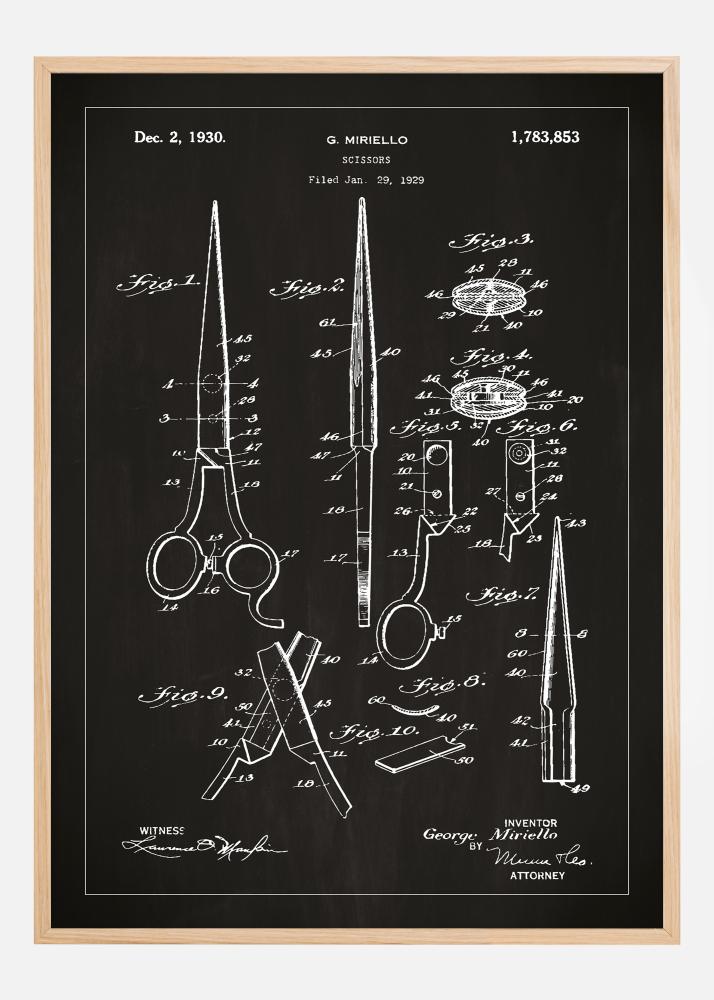 See eristuv patentsi plakat on austusavaldus klassikalisele disainiikoonile - kääridele. See kujutab G. Mirellose patenti, mis anti välja 2. detsembril 1930 patentnumbriga 1,783,853, pärast seda, kui see esitati 29. jaanuaril 1929. Täpsete visanditega, mis näitavad kääride erinevaid nurki ja osi, teravatest labadest kuni ergonoomiliselt kujundatud käepidemeteni, jäädvustab see patentsetees käsitöö ja disaini olemuse.