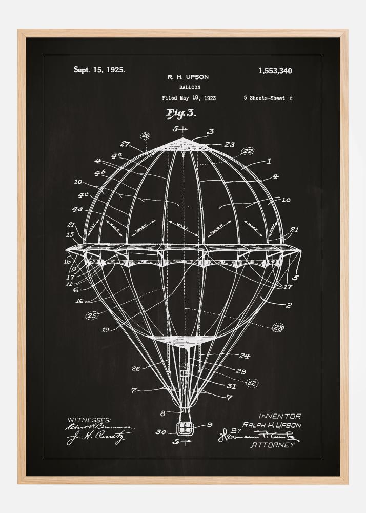 See ainulaadselt valmistatud patendiplakat illustreerib üksikasjalikku konstruktsiooni õhupallist, mille algne patent loodi uuendaja Ralph H. Upsoni poolt. Patent sai 15. septembril 1925 number 1,553,340, olles põnev näide varajasest aerodünaamilisest inseneritööst. See patendiplakat on austusavaldus unistusele pilvede vahel hõljumisest ja inimkonna püüdlustest taeva uurimiseks.