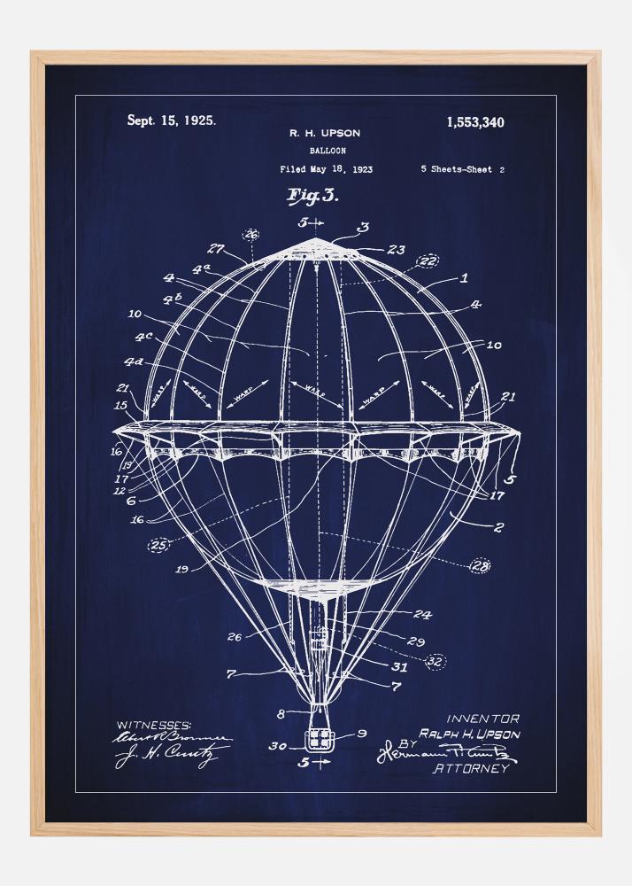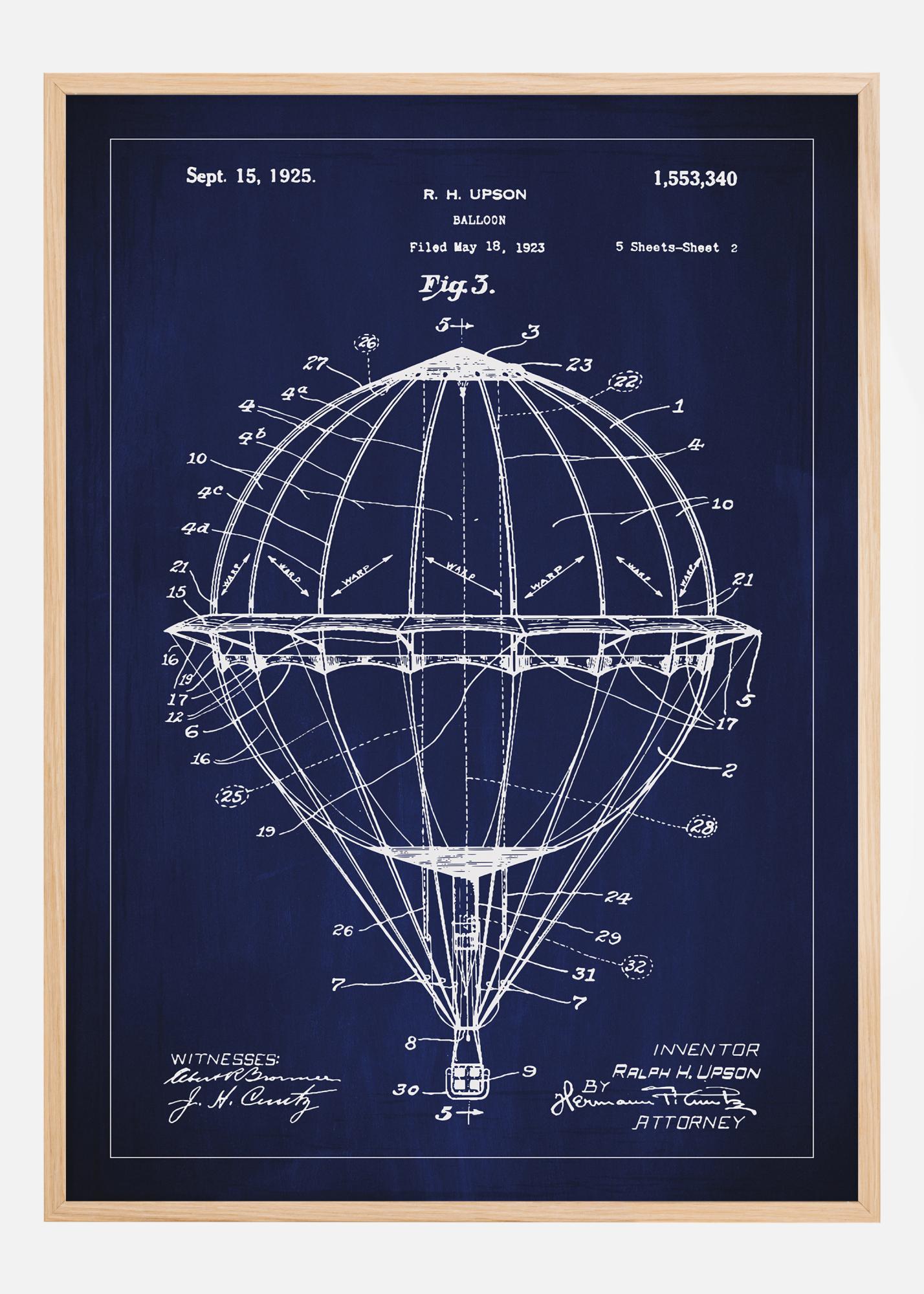 Tõelistele varajaste lennundustehnoloogia edusammude entusiastidele pakub see patendiplakat pilguheitu lennunduse pioneeride kullavärvi ajastusse. Esitletud 15. septembril 1925, illustreerib see patendijoonis, number 1,553,340, Ralph H. Upsoni kujundatud õhupalli, mis esindab olulist verstaposti aerodünaamilises disainis ja konstruktsioonis. See plakat on hindamatu kujutis inimkonna püüdlustest ja unistustest taevaseiklustest.