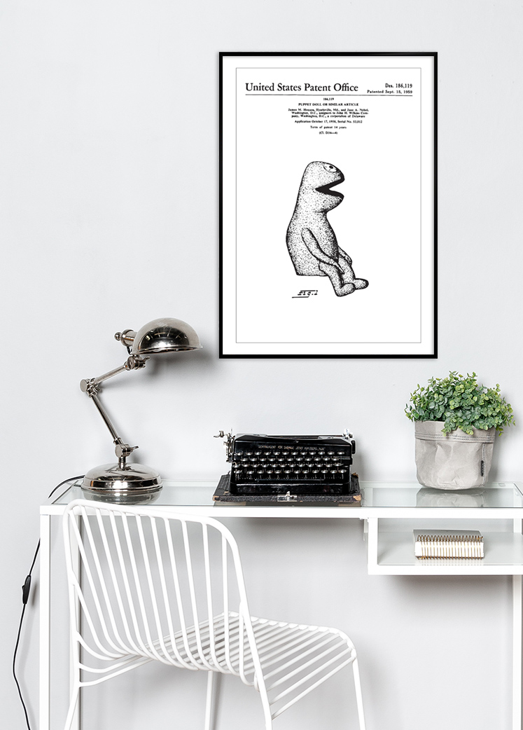 See patendiplakat esitleb Kermiti disaini, mänguasjade innovatsiooni, mis dokumenteeriti ametlikult 15. septembril 1959 patendinumbri Des. 186,119 all. Kujutatud figuur näitab nukust üksikut külgvaadet, mis oma eristuva ja karismaatilise vormiga pakub pilguheit mänguasjade disaini keskpaigast 20. sajandist. See oli aeg, mil disain ja loomingulisus hakkasid omama suuremat tähtsust mänguasjatööstuses, mille näiteks on see nukk.