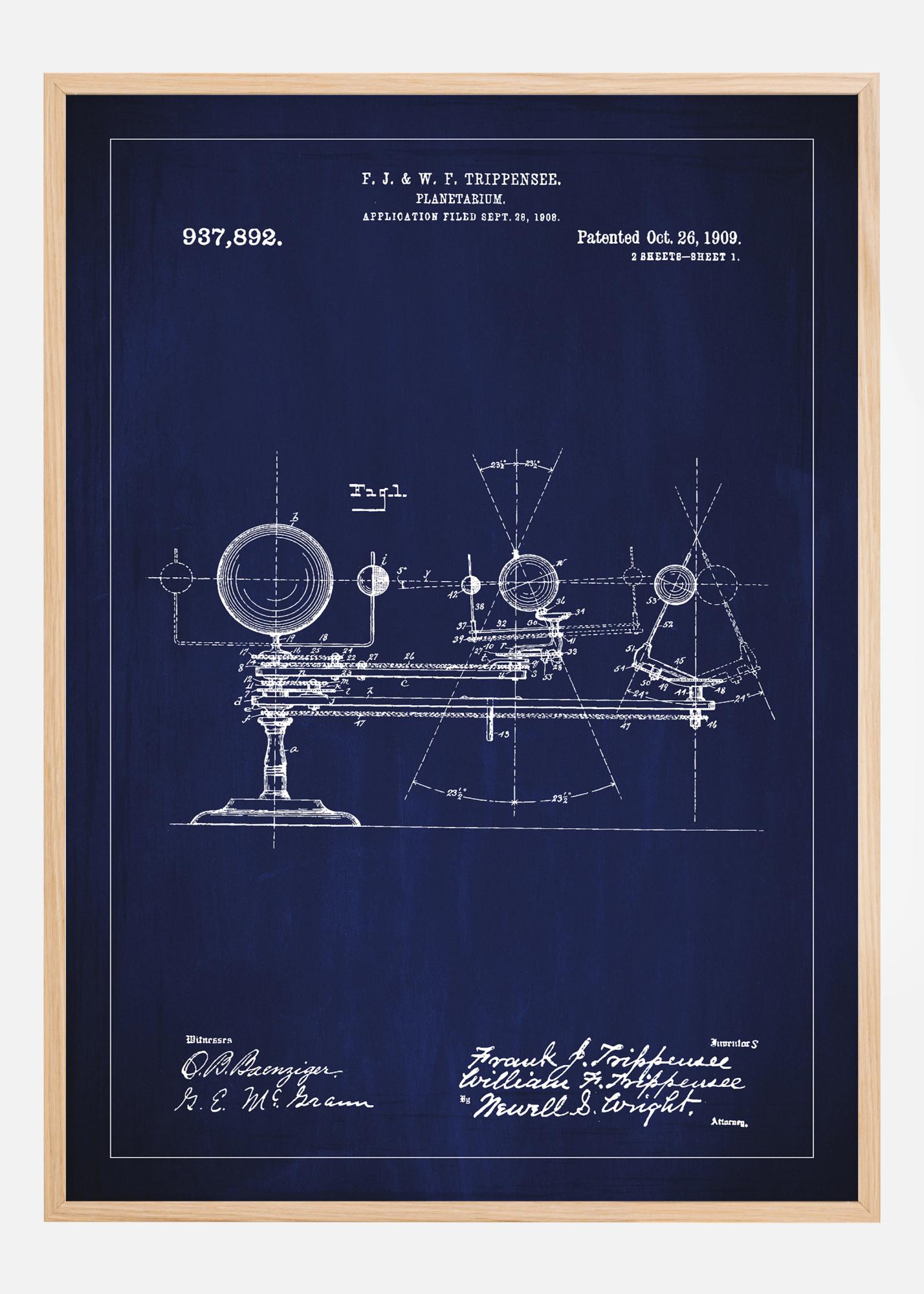 See uhke patentplakat kujutab planetaarseadet, mis on patenteeritud F. J. & W. F. Trippensee'le patendinumbriga 937,892. Patent, mis registreeriti ametlikult 26. oktoobril 1909, on tehnilise joonistamise ja disaini meistriteos, mis kehastab tolle aja teaduslikke püüdlusi ja leidlikkust. Motivid annavad ülevaate varajase astronoomia instrumentidest ja see on eksklusiivne dekoratiivese kõigile, kellel on huvi teaduse ajaloo vastu või kes hindavad antiikseid teadusinstrumente.
