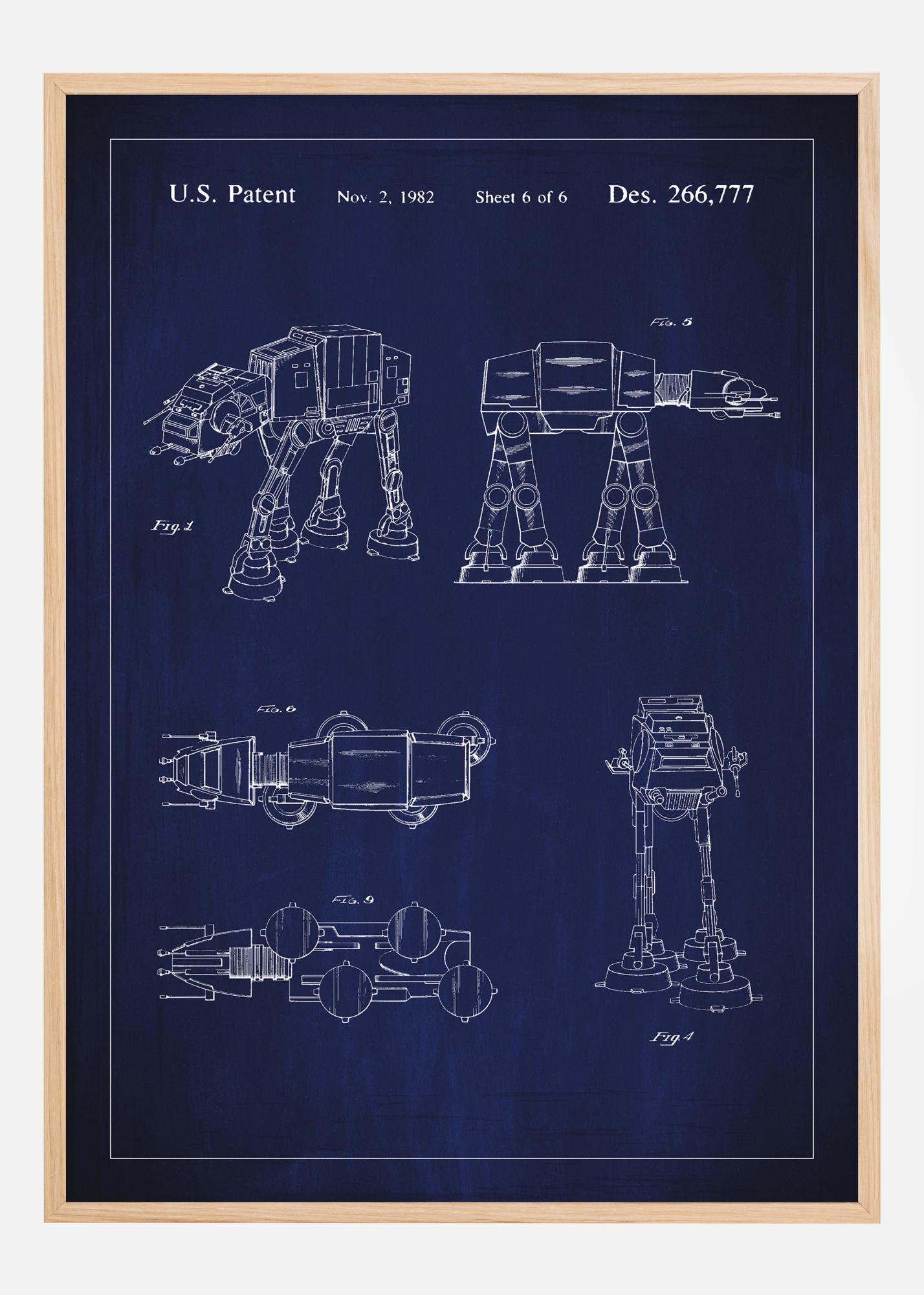 See kunstiline patendiplakat kujutab kuulsa disainipatendi Des. 266,777 eristuvaid konstruktsiooni jooniseid, mis registreeriti 2. novembril 1982. Kujutis näitab ATAT-i tehnilisi jooniseid Star Warsist mitmes vaates, millest igaüks demonstreerib seadme ainulaadset struktuuri ja funktsioone. See on esitatud tumesinisel taustal, mis lisab valge joontega illustratsioonidele elegantse ja kaasaegse ilme.