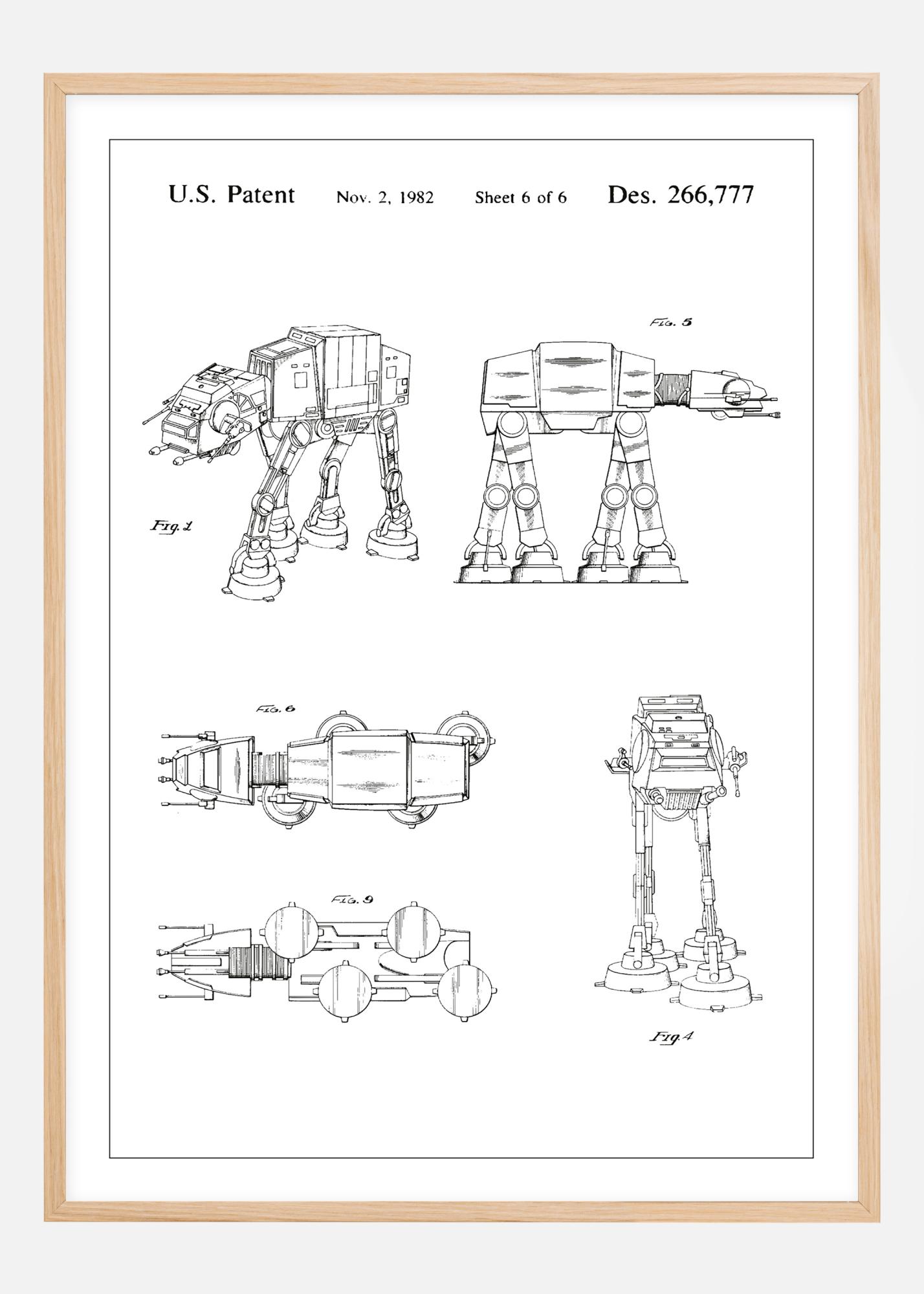 See elegantne patendiplakat on loominguline taasesitus disainpatendist Des. 266,777, registreeritud 2. novembril 1982. See näitab täpseid joonistusi Star Warsi ATAT-st, andes igale vaatajale sügavama tunnustuse selle tehnilise saavutuse keerukuse ja täpsuse suhtes. Need patendi joonised ei ole mitte ainult intellektuaalselt stimuleerivad, vaid ka stiilsed kunstiteosed, mis lisavad igasse ruumi tööstuslikku võlu.
