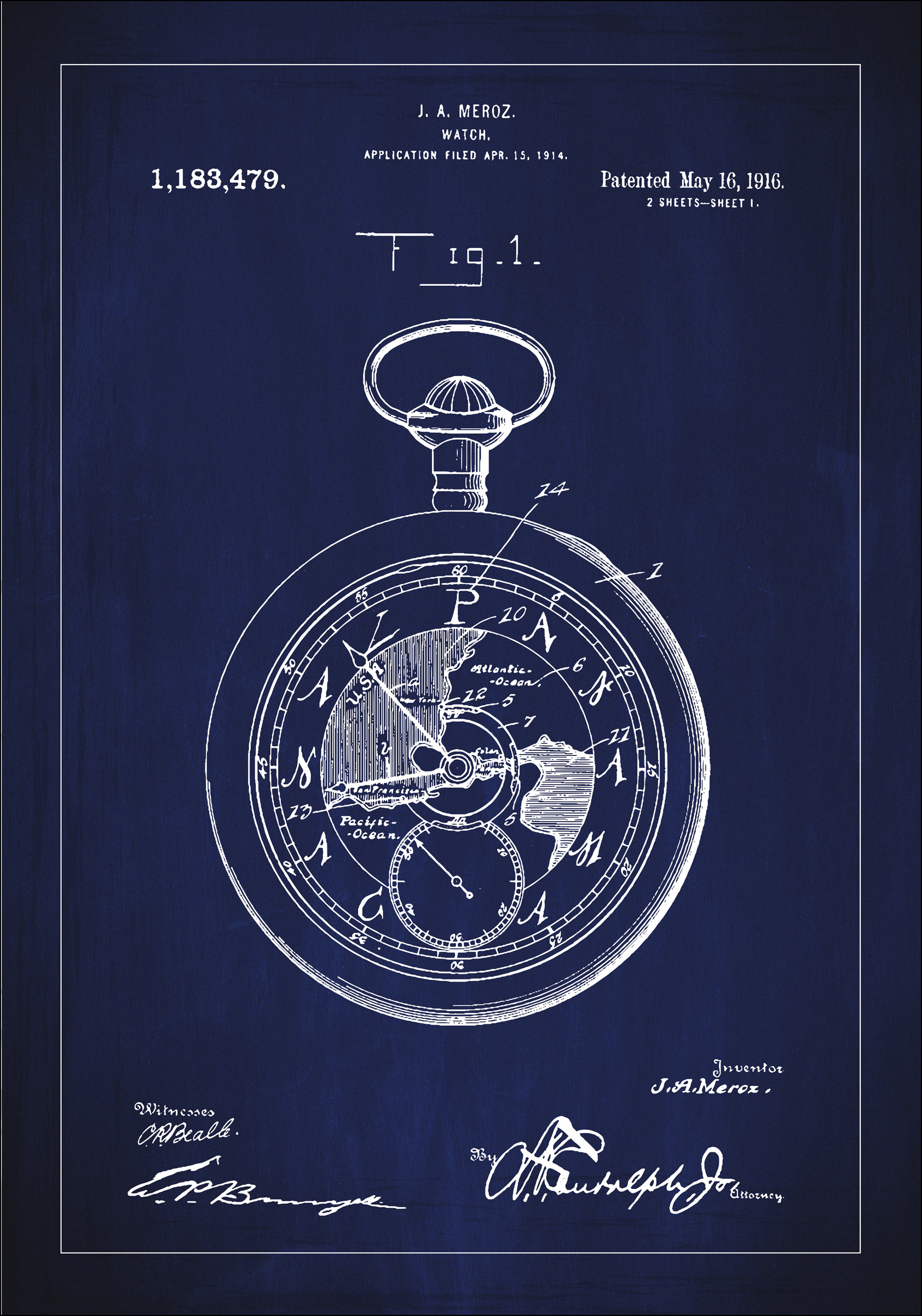Avastage ajaloo leidlikkust meie eksklusiivse patendi plakatiga, mis kujutab klassikalist ajanäitajat. See autentne patendijoonis, algselt esitatud 15. aprillil 1914 ja patendinumber 1,183,479 välja antud 16. mail 1916, toob esile J.A. Merozi ajatu innovatsiooni. Selle täpsed detailid ja tehnilised visandid annavad ainulaadse sissevaate käekella varajasesse arengusse. See patendi plakat ühendab tööstusajaloo elegantse disainiga, pakkudes täiuslikku vestluse algatajat kõigile, kes hindavad mehaanilist disaini ja ajaloolisi dokumente.