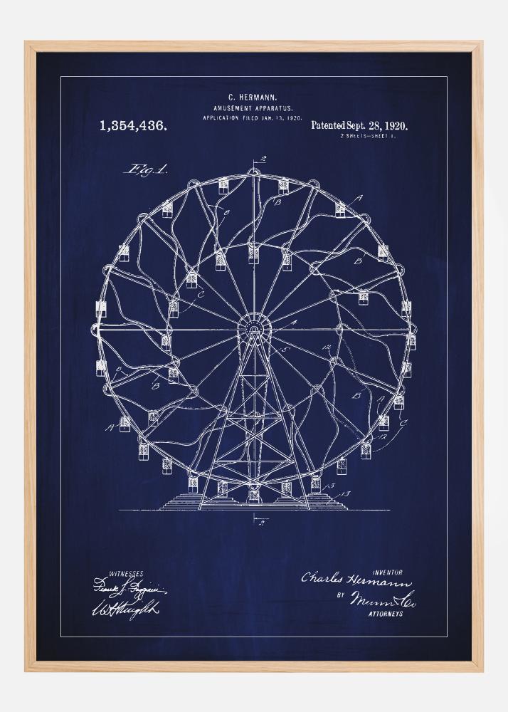 Muutke ükskõik milline sein austusavalduseks klassikalisele insenerikunstile selle patendiplakatiga, mis põhineb C. Hermanns disainil atraktsiooni jaoks, mida kirjeldatakse patendinumbris 1,354,436 ja mis anti välja 28. septembril 1920. See oskuslikult loodud illustratsioon vaaterattast ei ole mitte ainult dekoratiivne kunstiteos, vaid ka esindus ajast, mil meelelahutusest said tehnilised saavutused. Konstruktsiooni detailid tabavad möödunud ajastu lõbustusparkide kuldaega ja mehhaanilise kunsti meistriteoseid.