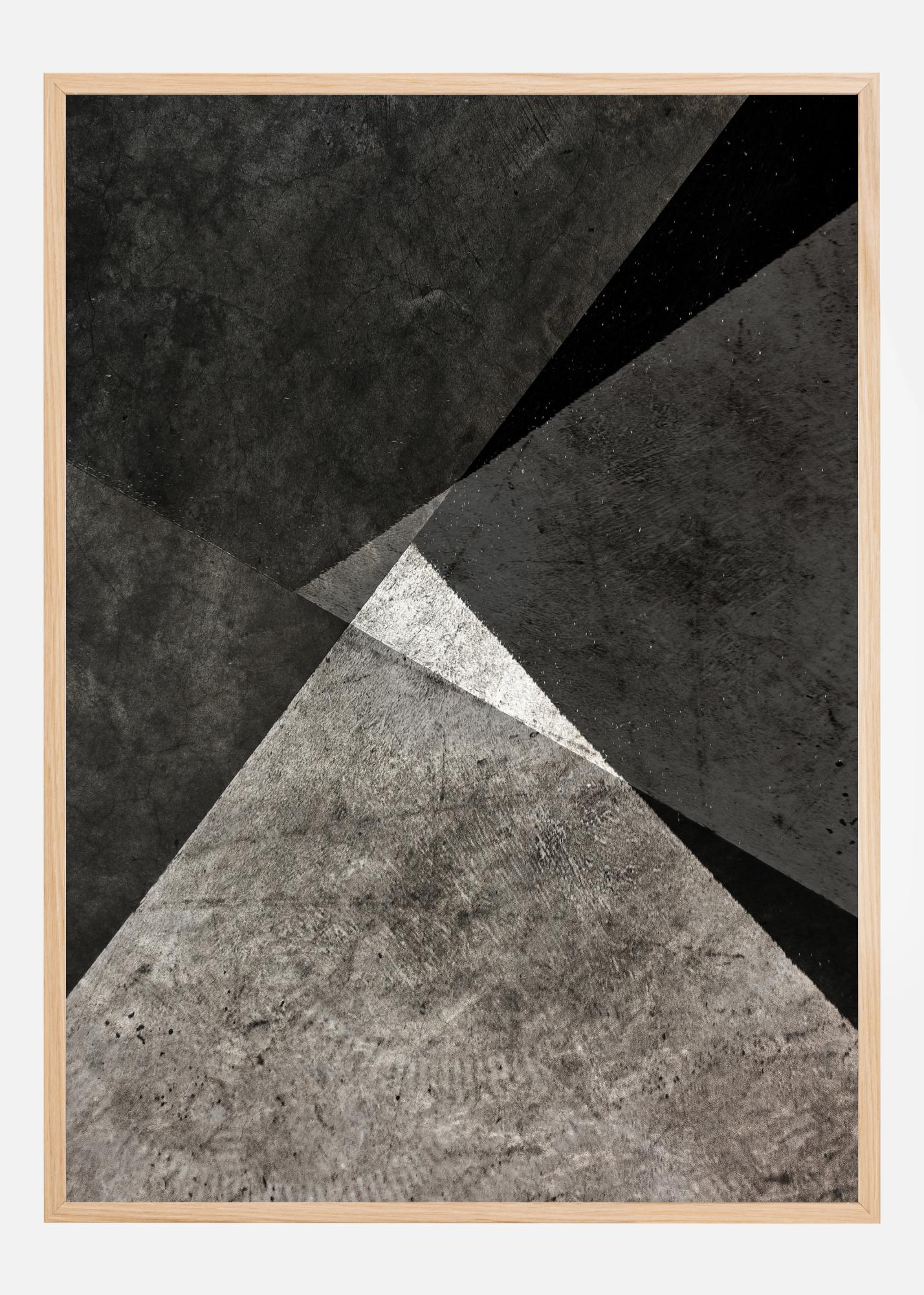 Salapärane trükk mustvalgete kolmnurksete kujunditega, mis on paigutatud põrandale. Loomuliku valguse paistel plaatidel on ebaselge, kas väiksem kolmnurk on valge või lihtsalt valgustatud valgusest. See on täiuslik poster, mida riputada siledale seinale.
