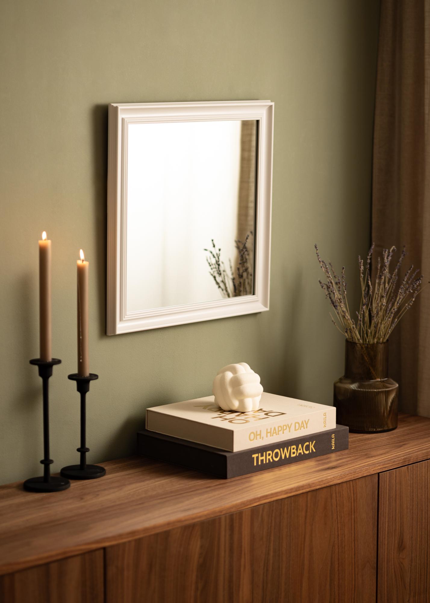 Alice Valge on peegel, mille raam on klassikaliselt range kujundusega sirgete joontega, et keskenduda motiivile.
