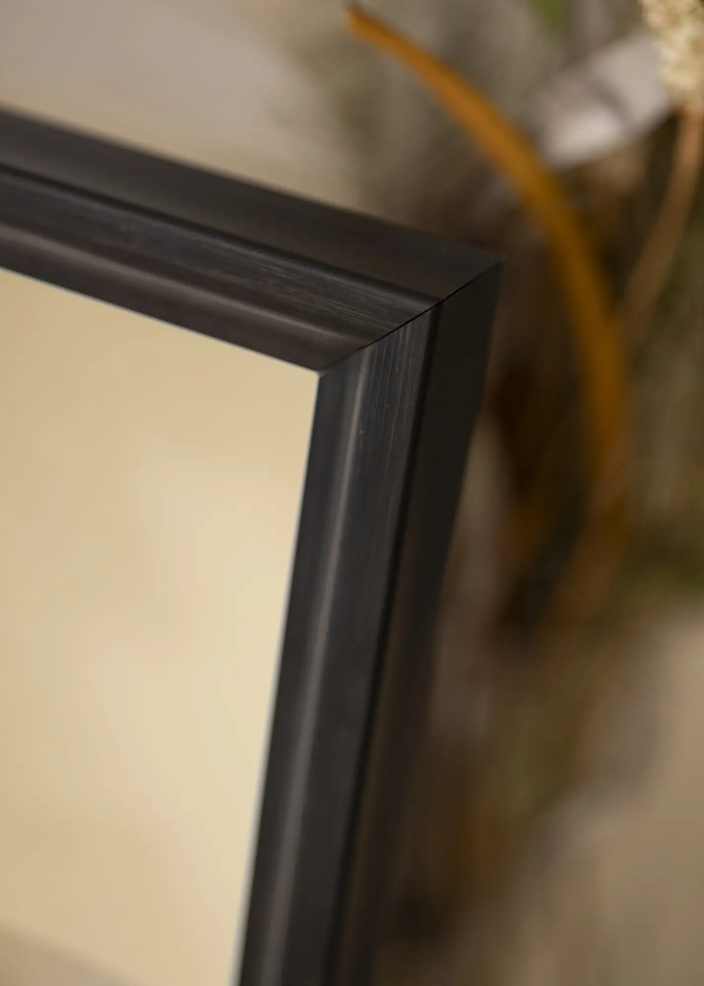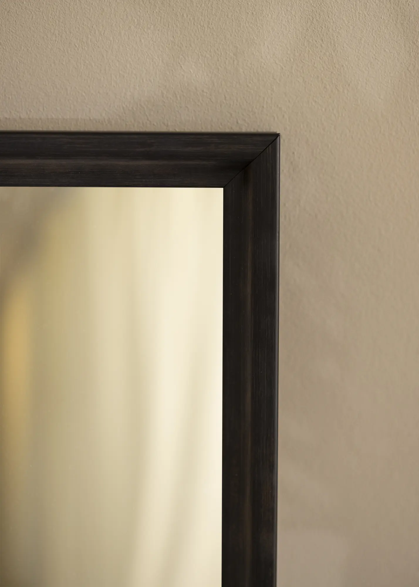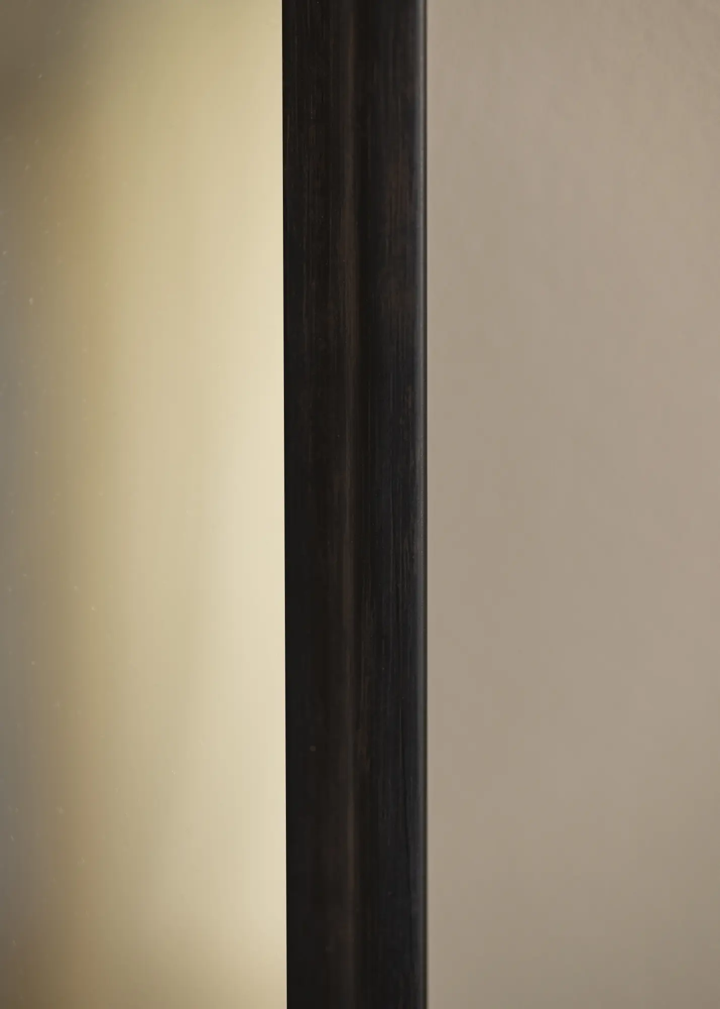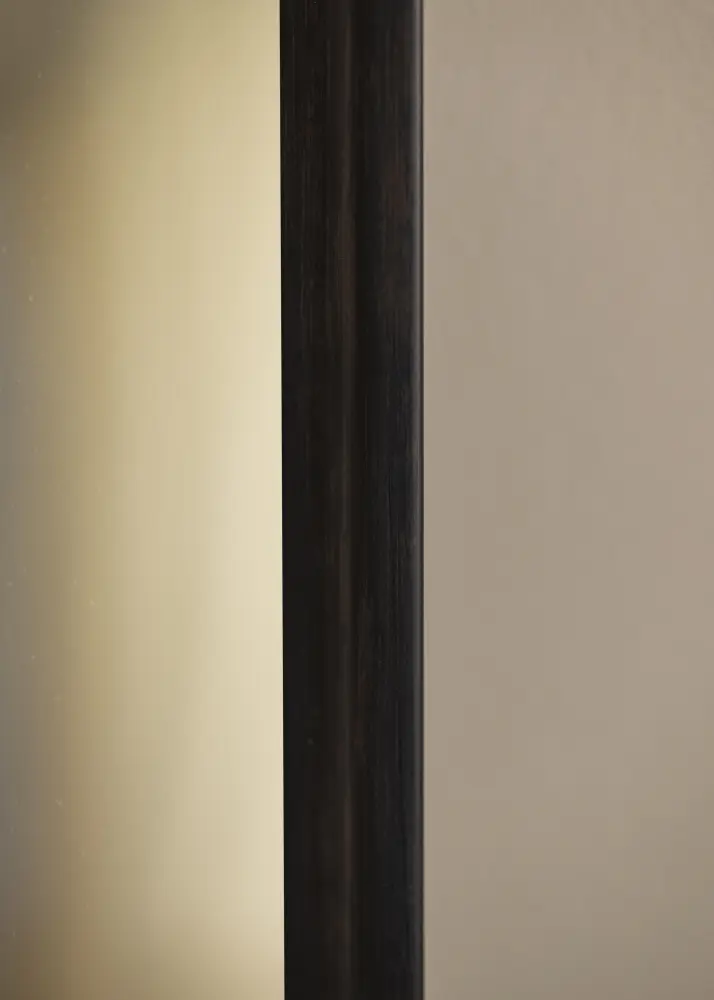 Traditsiooniline peegliraam tumedas mustjaspruunis värvis, mis on pigem must kui pruun. Suurepärane valik, kui otsite mõõtulõigatud peeglit tumedas toonis, kus puidu struktuur on nähtav ja annab elavama peegli võrreldes täiesti musta profiiliga.