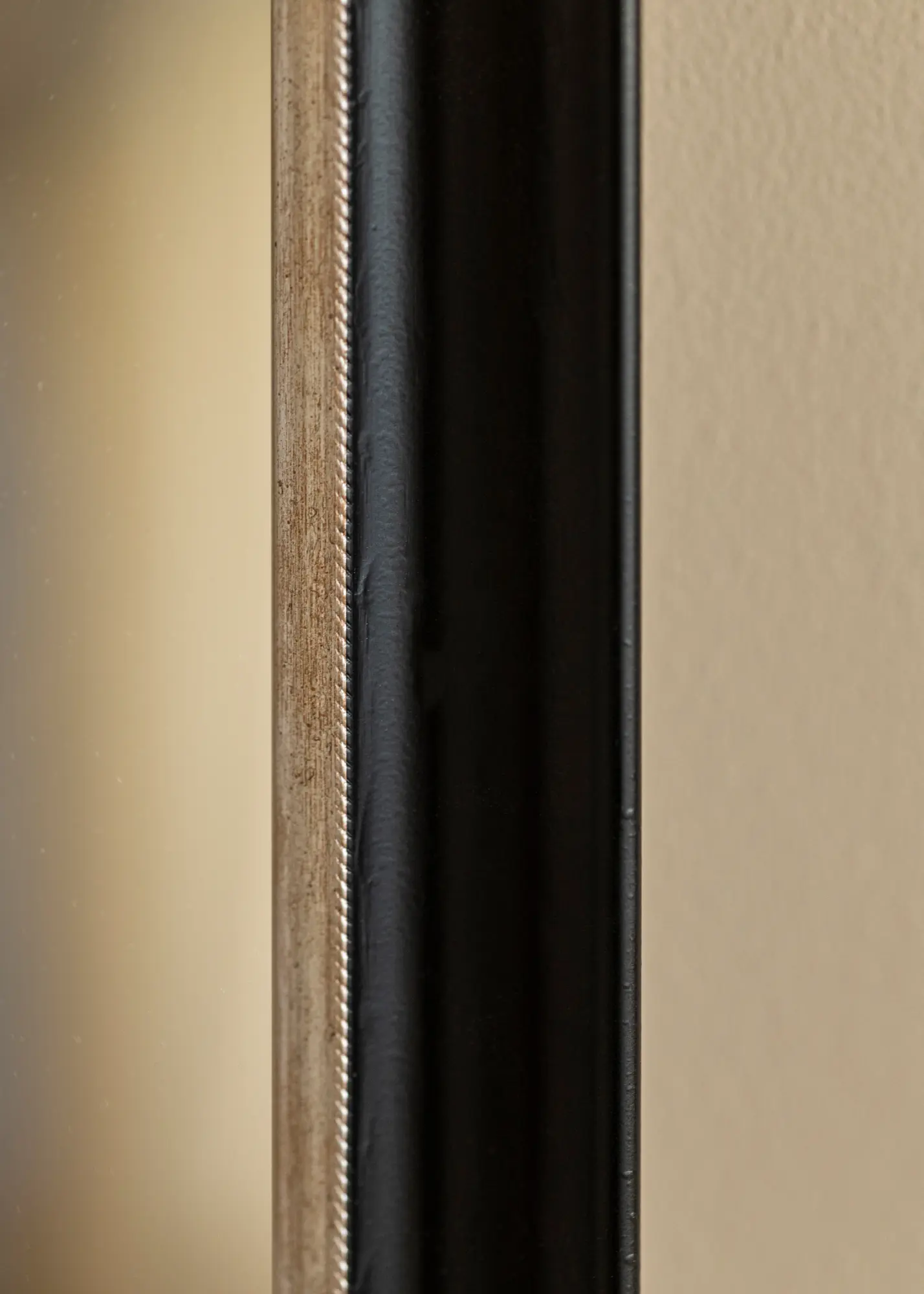 Luksuslik peegel valitud suuruses musta klassikalise profiiliga. Motivi lähedal on elegantne hõbedane kant, mis annab peeglile juurde sära.