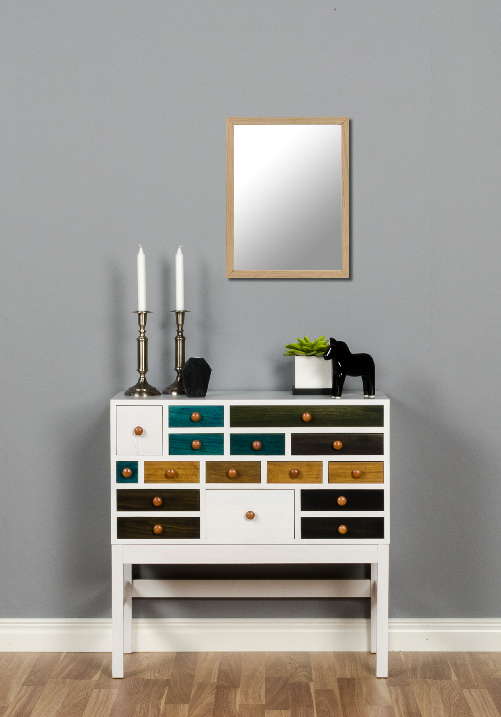 Loo kodus loodustundega atmosfäär tamme sisustuskomponentide abil! See stiilne peegel valmistatakse vastavalt teie mõõtudele ja seda on saadaval nii väikeses formaadis, mis sobib ideaalselt mööbli kohale, kui ka suures formaadis esikuseinale. Soovitame sobitada ilusat naturaalset värvi valgete, roheliste ja pruunide tekstiilide, kaunistuste ja teeküünaldega!