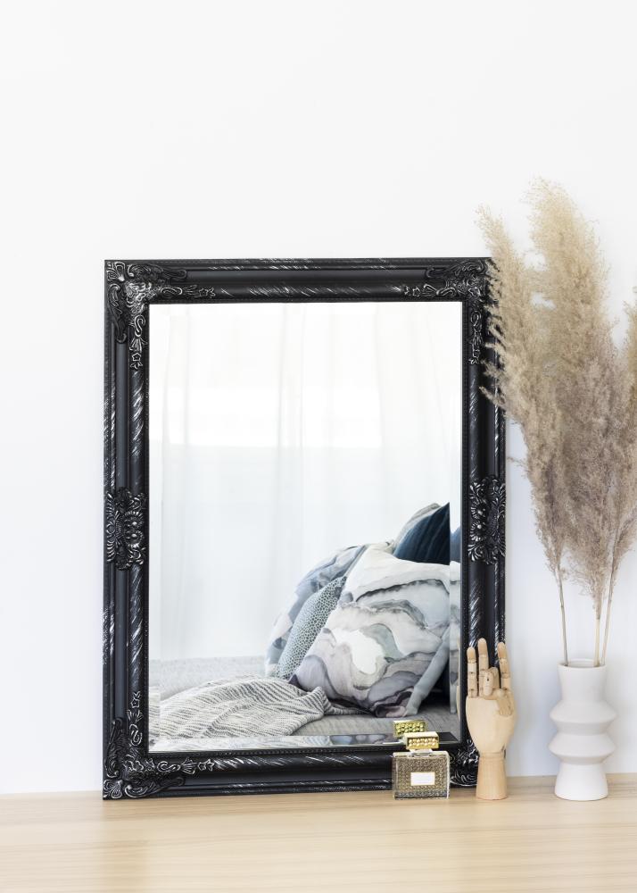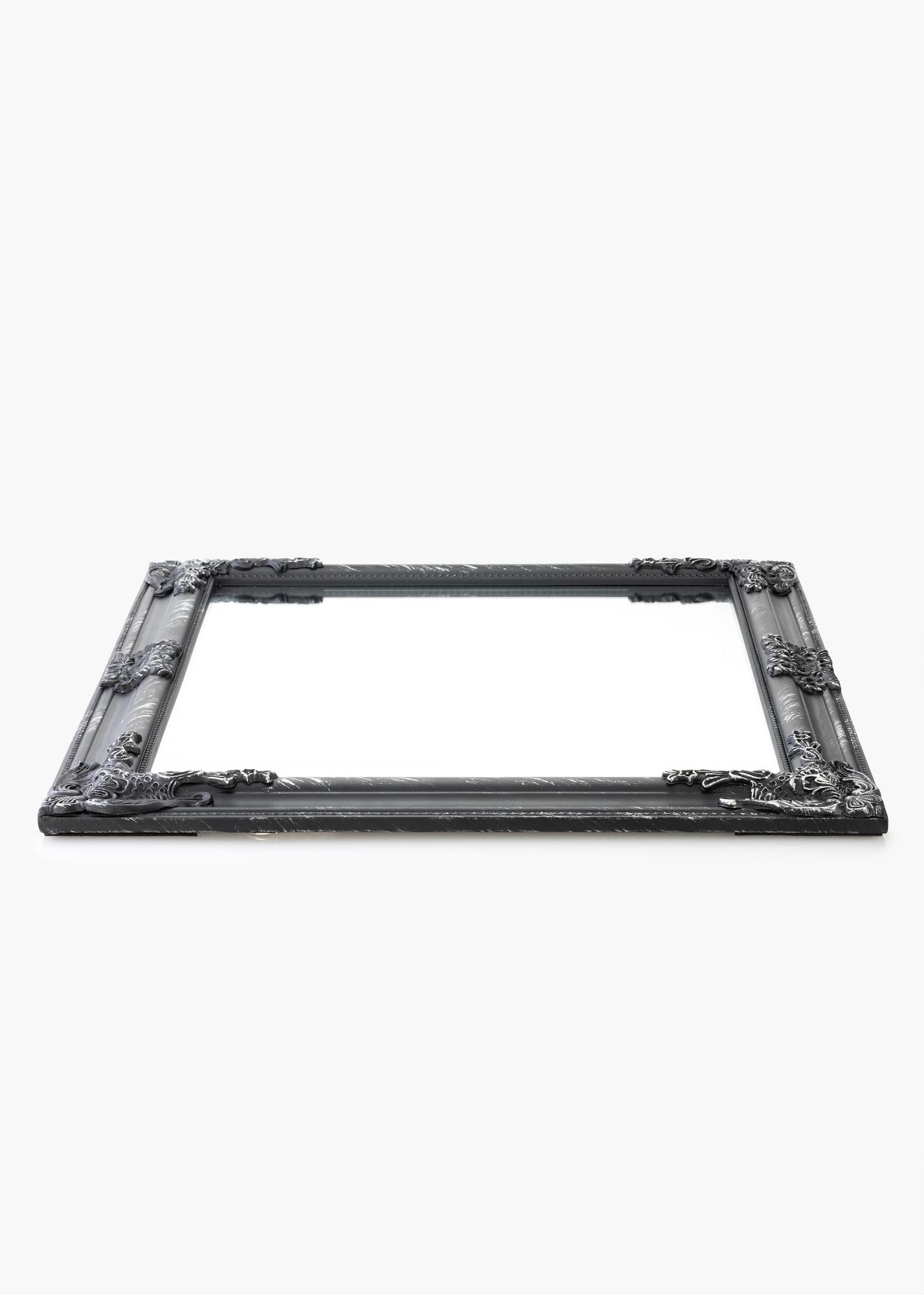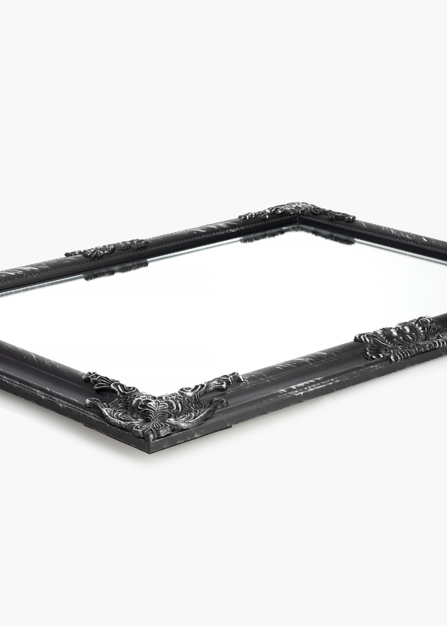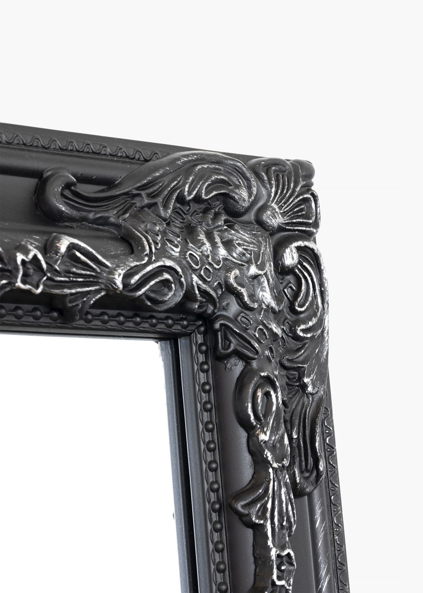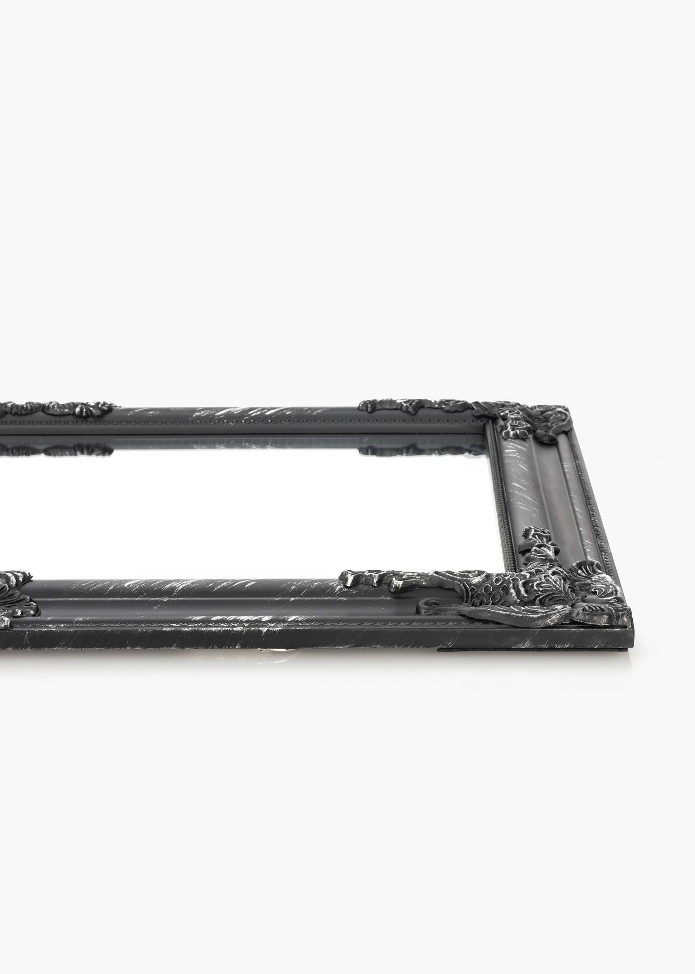 Bologna Musta peegliseerial on ladina kujundus rikkaliku dekoratsiooniga nurkades ja raami külgede keskpunktides. Veidi kitsam raam kui paljudel teistel selle stiili peeglitel. Raam on valmistatud puidust ja dekoratsioon on valatud kipsi, enne kui see raamile kantakse.