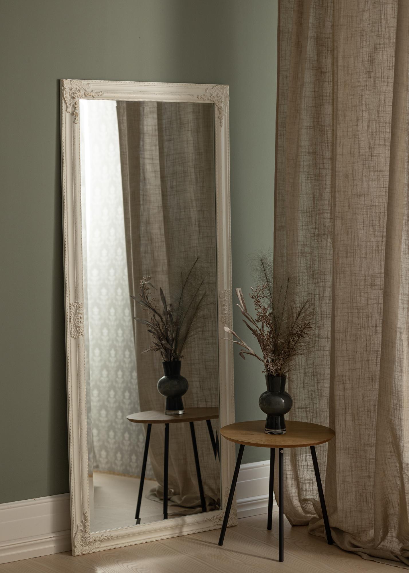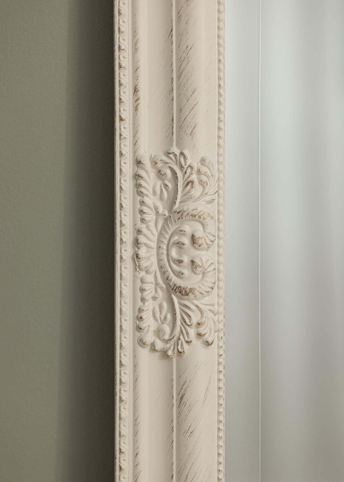 Avastage meie ristkülikukujulise peegliga stiilne elegants, klassikalise võlu ja kaasaegse lihtsuse ideaalne kombinatsioon. Oma helde mõõtmetega 70x160 cm pakub see peegel teie kodus praktilist ja dekoratiivset funktsiooni. Valge raam on rikkalikult kaunistatud detailidega, mis viitavad möödunud aegadele, samal ajal kui puhas vorm hoiab disaini ajakohase ja kergesti sobitatud ülejäänud sisustusega.