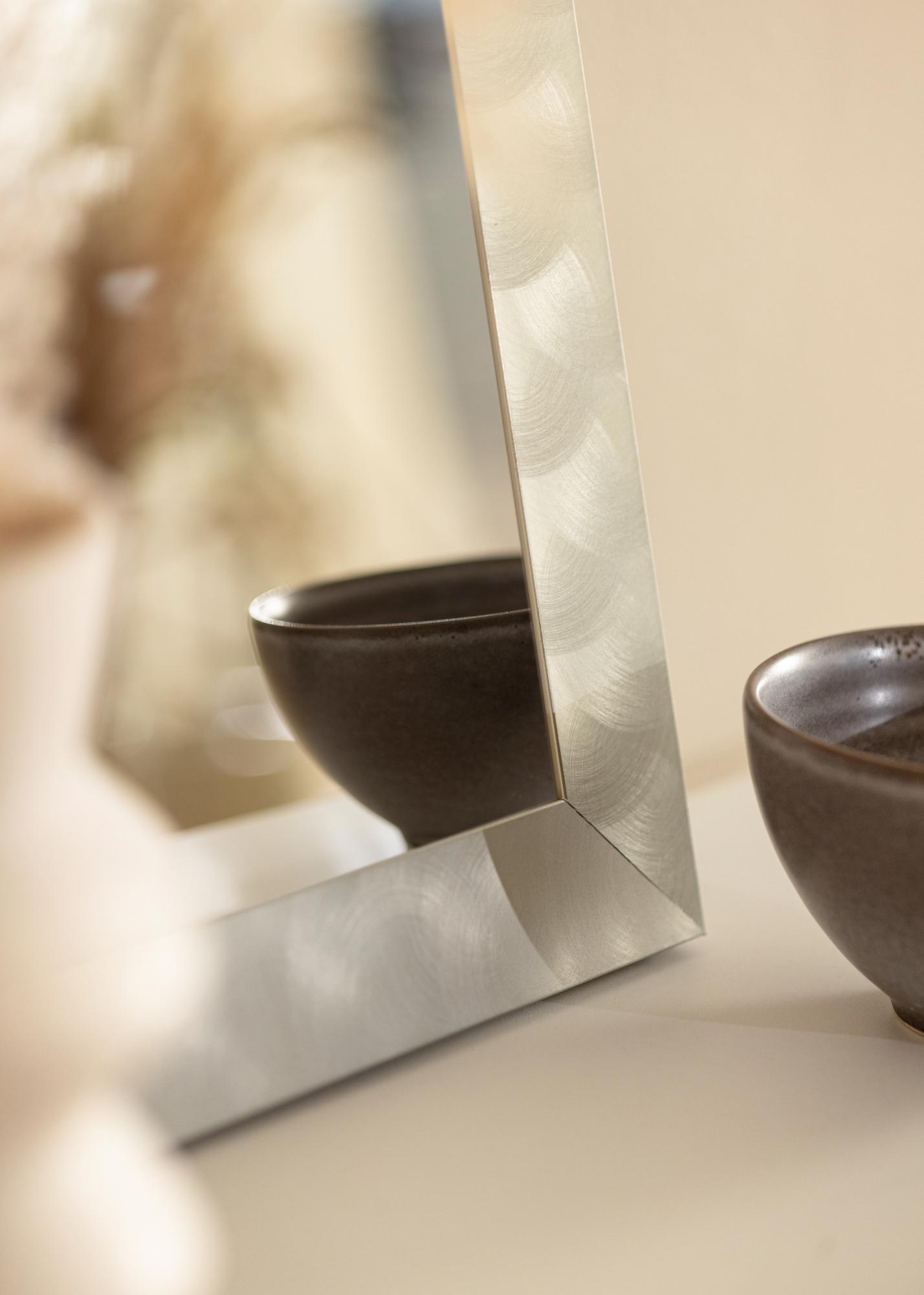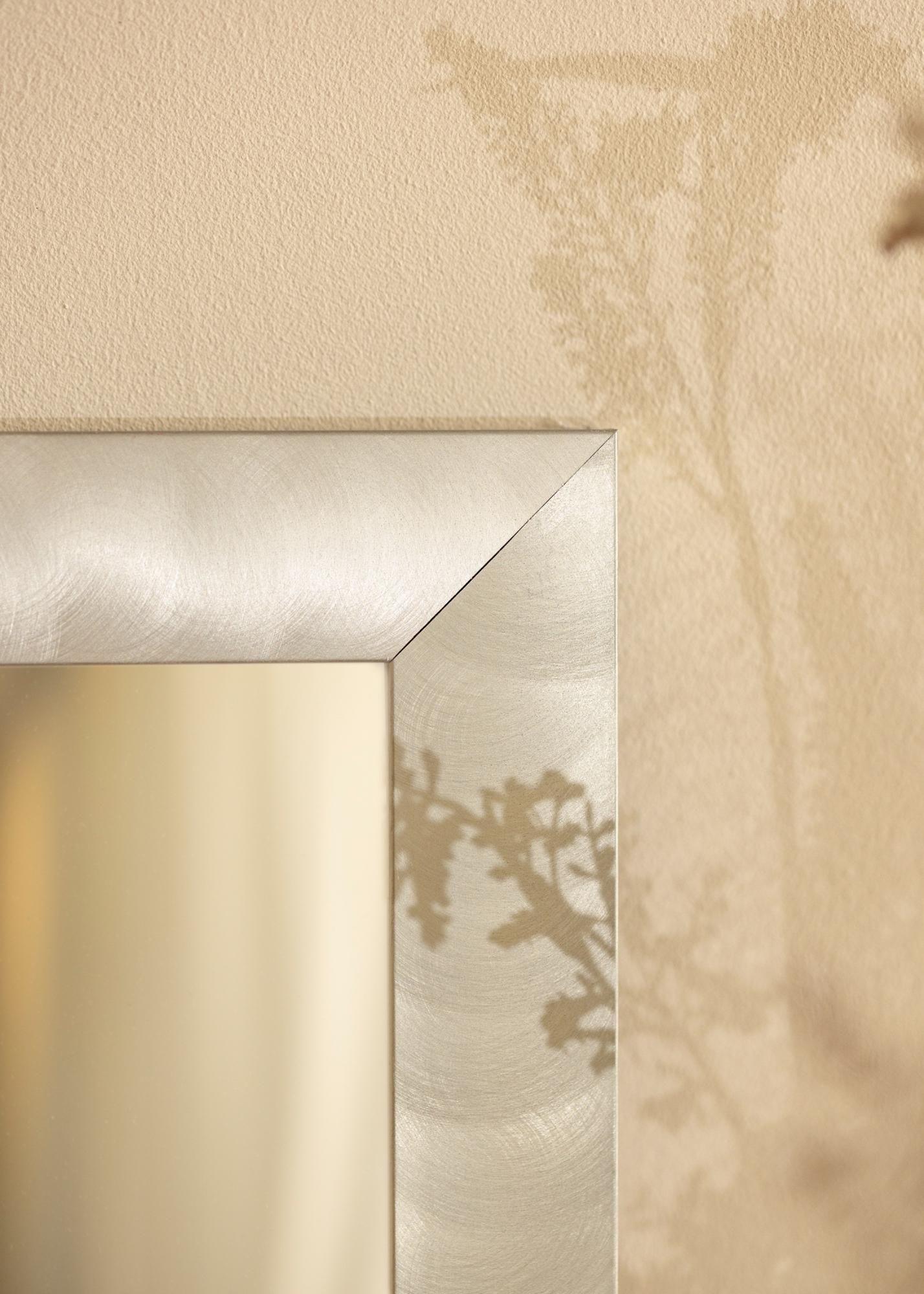 Diskreetne peegel, millel on sile ja lai raam, valmistatud Saksamaal kvaliteetsest alumiiniumist. Raam näeb välja nagu hele elus teras ja oma puhta disainikeelega sobib peegel hästi nii minimalistlikku kui ka maalähedasse kodusse ning sobib igasugustesse ruumidesse. Riputage peegel tuppa, kus on hõbeda- või mustas raamis maalid, ning kombineerige sisekujunduse akessuaaridega hallides toonides, et säilitada interjööri ühtsus.