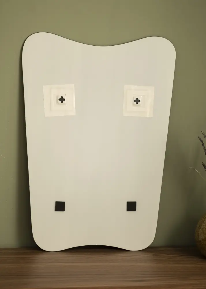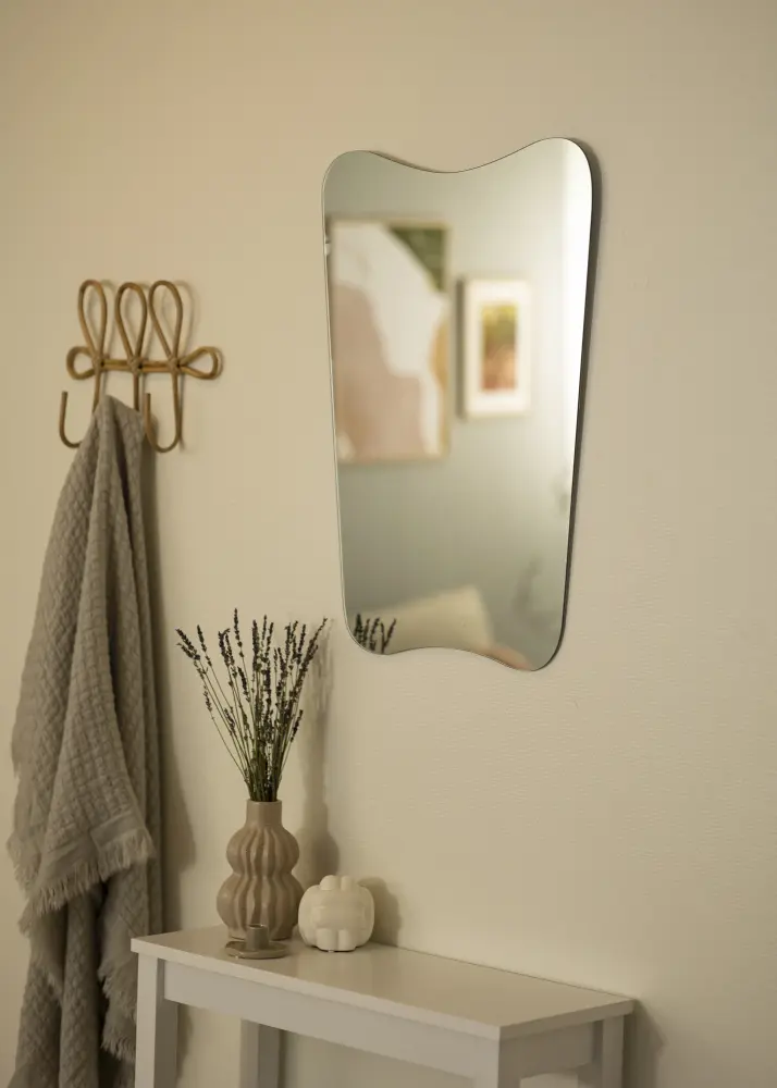 Avastage stiilne ja moodne peegel, mis on disainitud täiendama igat ruumi oma ainulaadse võluga. See ainulaadse kujuga peegel on pehmete, voolavate kõverustega, mis annavad klassikalisele ristkülikukujule kaasaegse ilme, ja sellel puudub nähtav raam, mis loob sujuva ja elegantse välimuse. Oma avarate mõõtmetega 50x70 cm on see praktiline ja dekoratiivne detail teie kodus.