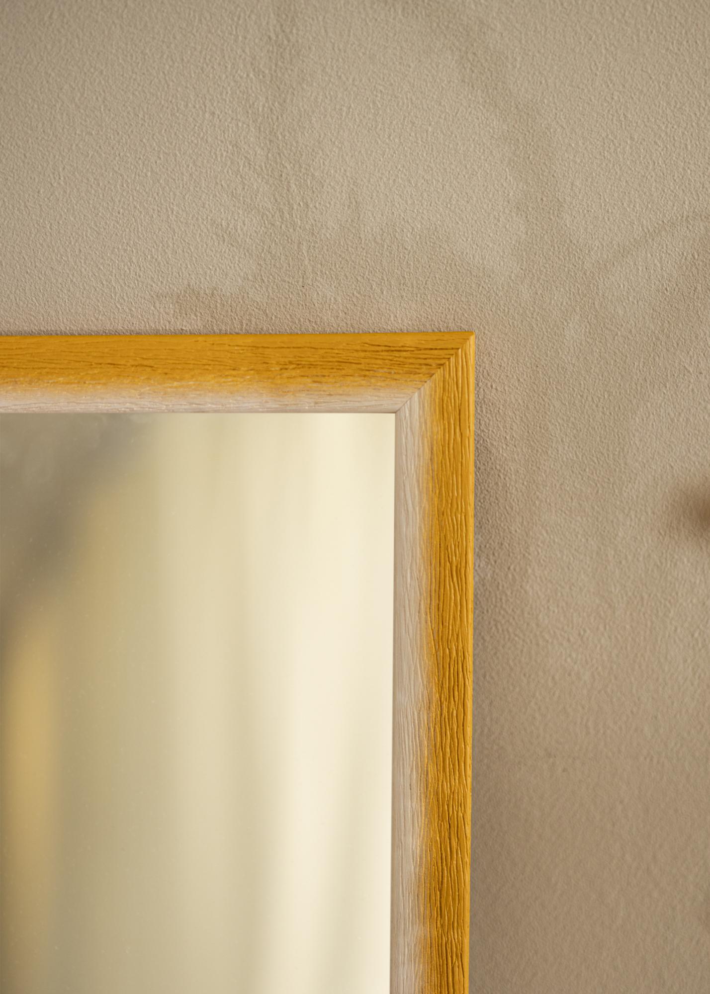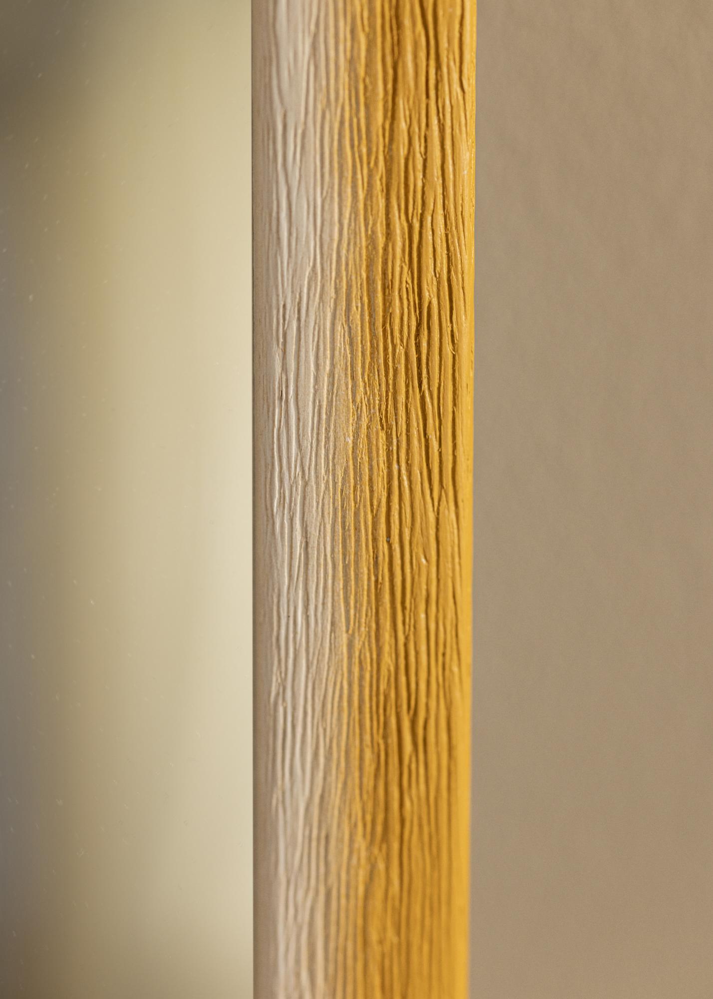 See peegel eristub oma harmoonilise värviülemineku poolest heledast, loomulikust valgest toonist sooja ookrikollase varjundini. See peen üleminek loob pehme, maalitud ilme, mis annab ruumile elavat sügavust. Raami pind on kaunistatud selge puidustruktuuriga, millel on sügavad sooned, pakkudes taktiilset ja loomulikku tunnet. See teeb peeglist mitte ainult funktsionaalse, vaid ka dekoratiivse elemendi teie kodus.