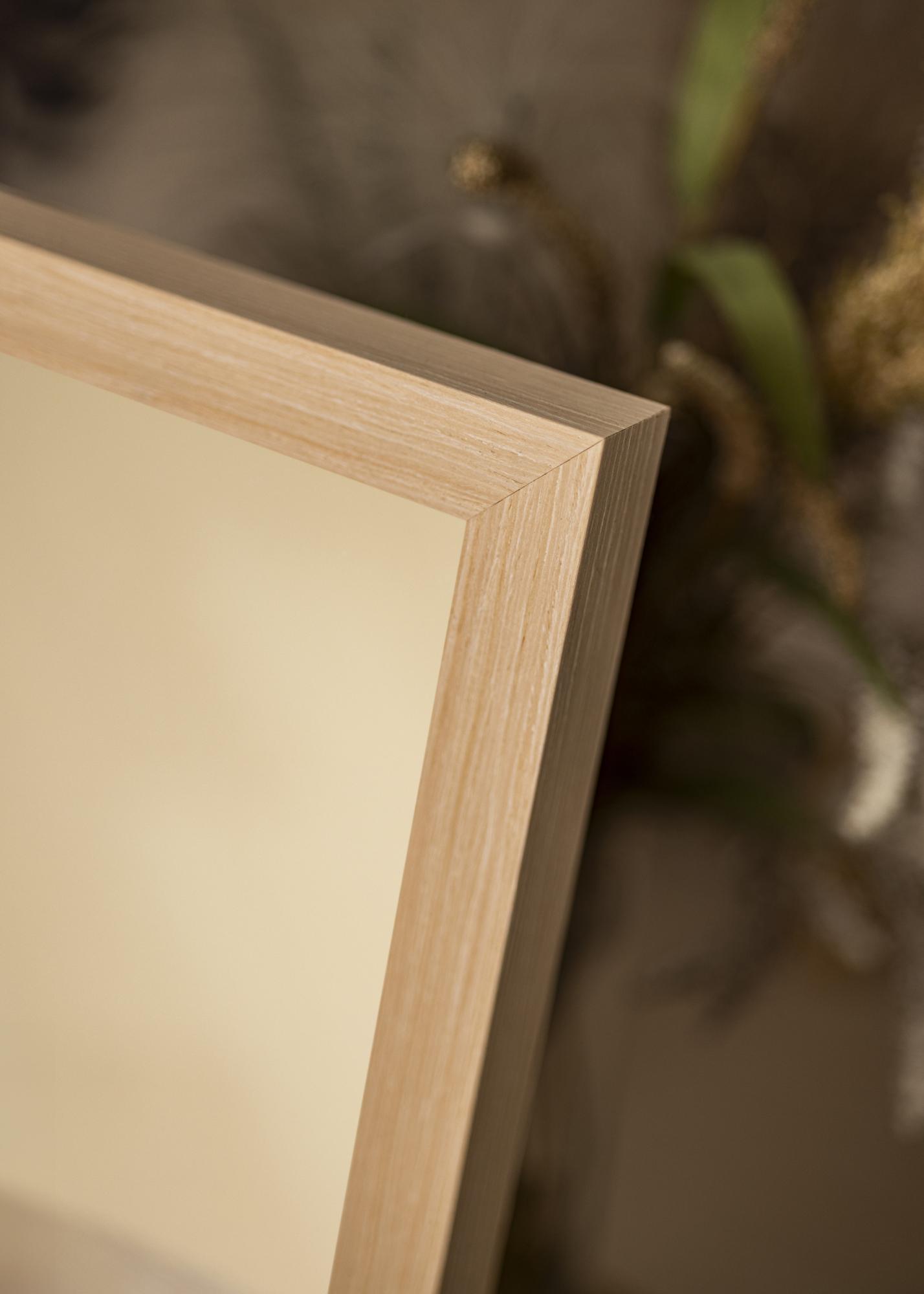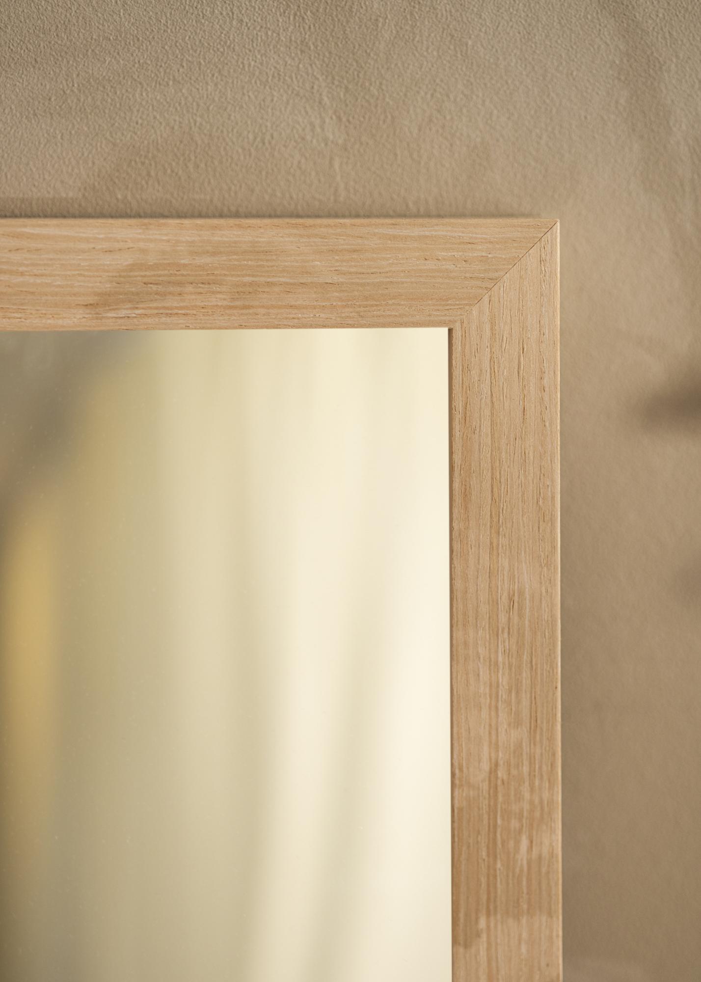 Peegli raam on 28 mm lai ja 33 mm sügav, pakkudes stabiilset ja robustset tunnet ilma ruumi üle domineerimata. Valmistatud männist, ühendab see vastupidavuse ja kerguse, mis muudab selle lihtsaks käsitseda ja paigaldada. Siidmatt viimistlus rõhutab puidu loomulikku struktuuri ilma valgust peegeldamata, luues toas meeldiva atmosfääri.