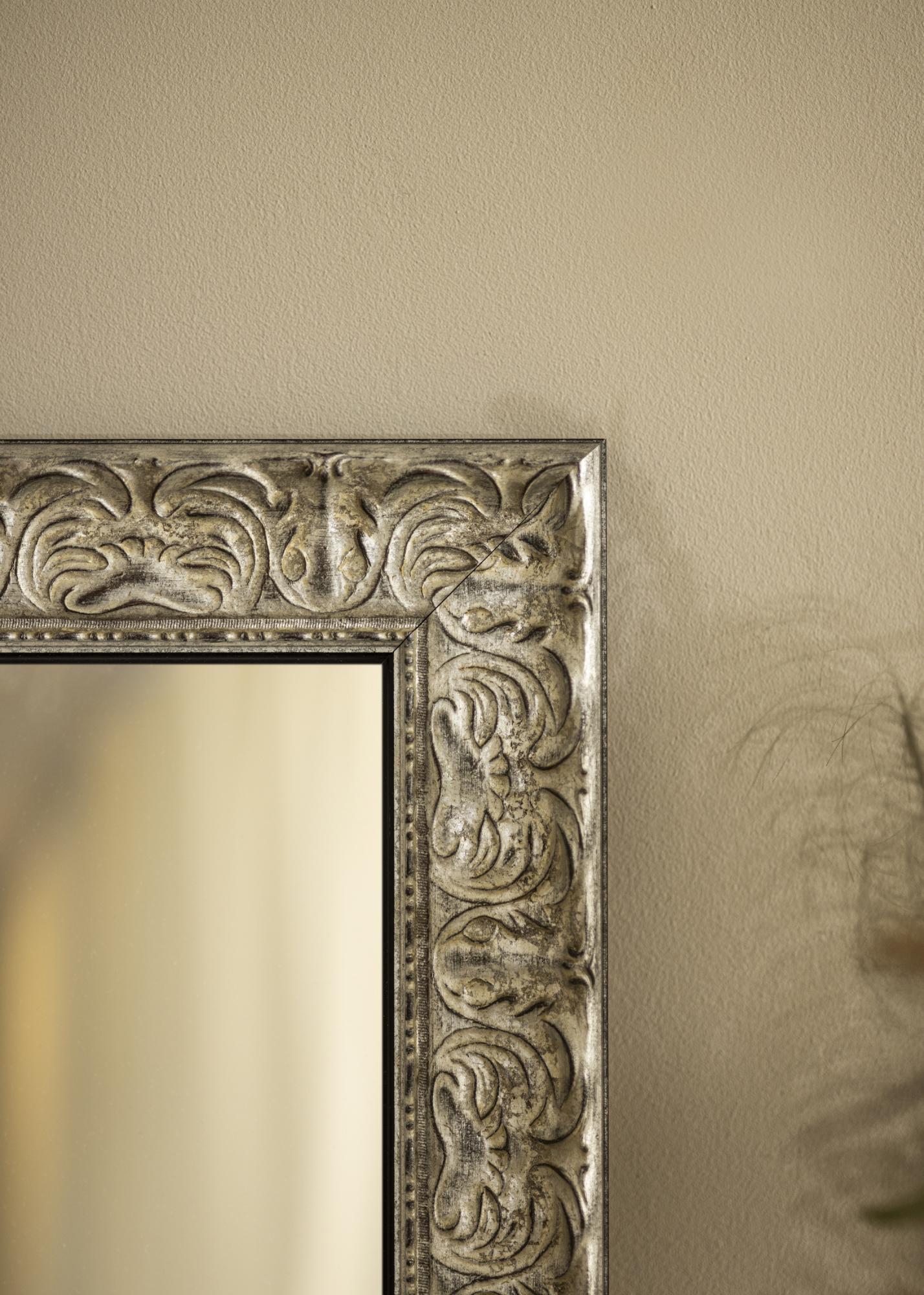Peegel Durham Silver on eritellimusel peegel, mis on valmistatud täpselt teie vajaduste järgi. Oma hõbedase raami ja antiikviimistlusega on see stiilne detail igas ruumis. Kaunistatud reljeef raamil annab peeglile ainulaadse iseloomu ja lisab sellele rustikaalset, kuid samas elegantset tunnet.