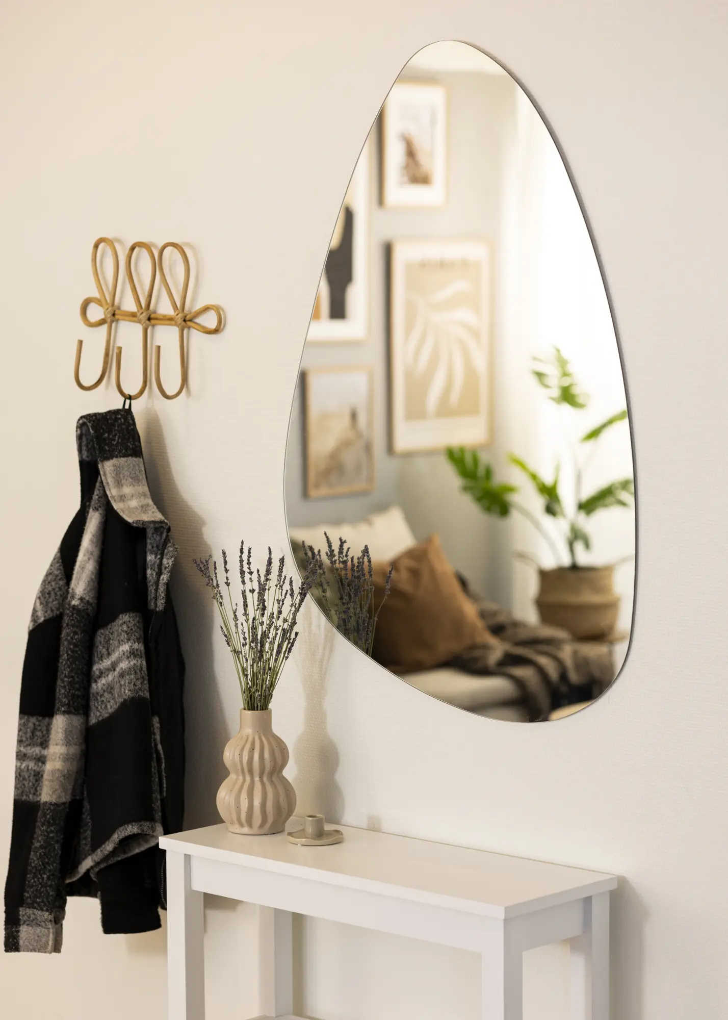 See peegel on ideaalne sulle, kui otsid elegantset peeglit minimalistlikus stiilis. Asümmeetriline kuju on kombineeritud õhukese peegliklaasiga ja raamita servadega, mis loob väga elegantse terviku. Tagaküljel on seinakinnitused.