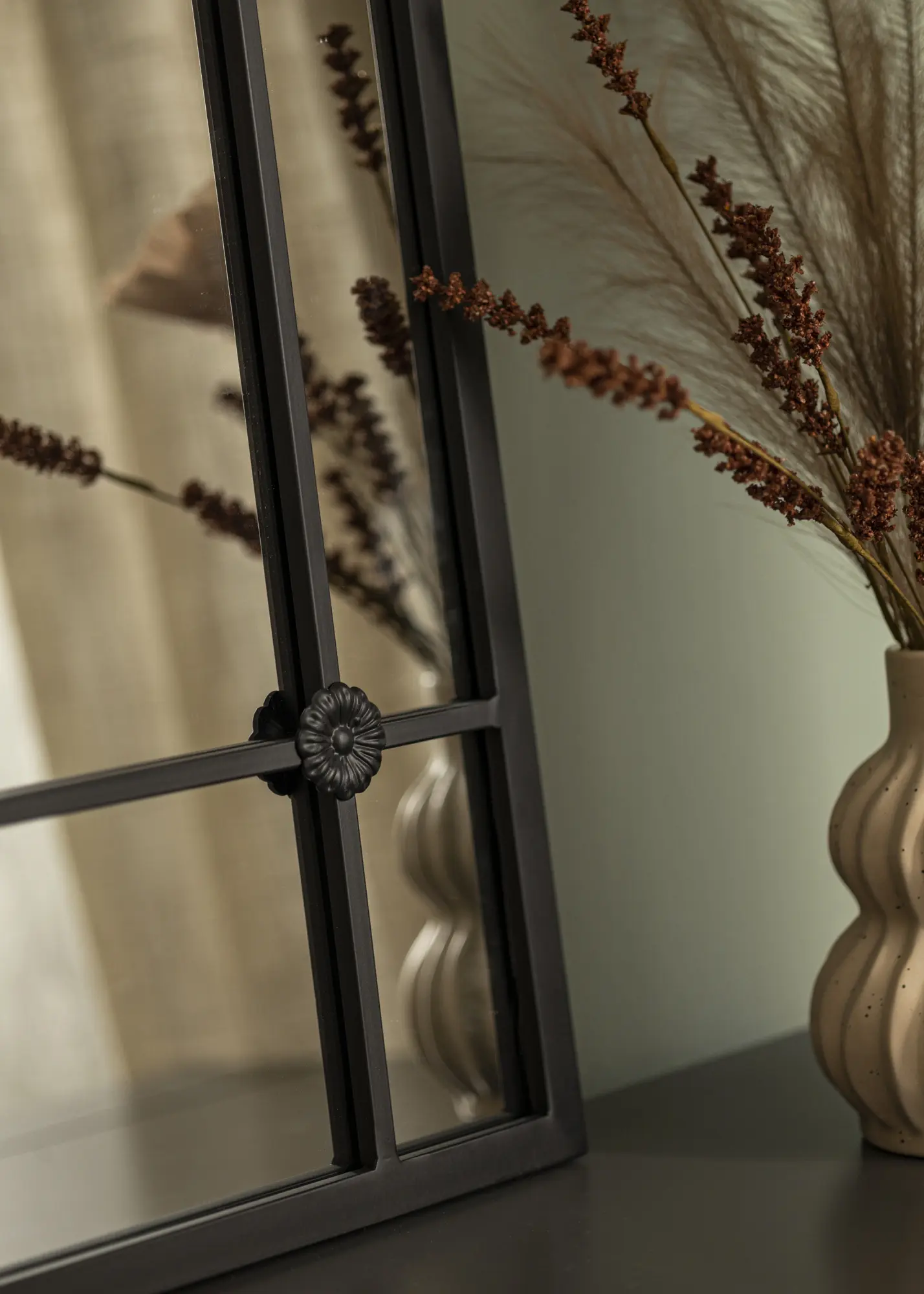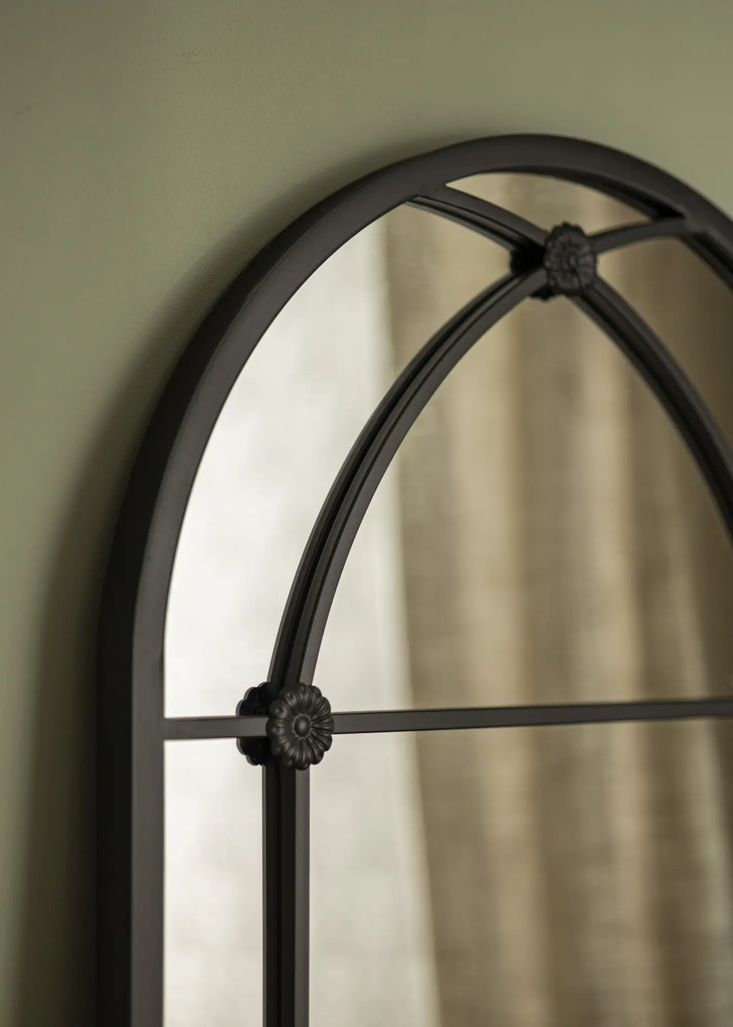 Oma kaarjate joonte ja detailirohke raudtööga meenutab peegel klassikalisi aknaid, mis annavad ruumis sügavuse ja ruumikuse tunde. See ei ole mitte ainult praktiline ese igapäevaseks kasutamiseks, vaid ka kunstiline sisekujunduselement, mis köidab tähelepanu ja panustab ruumi atmosfääri.