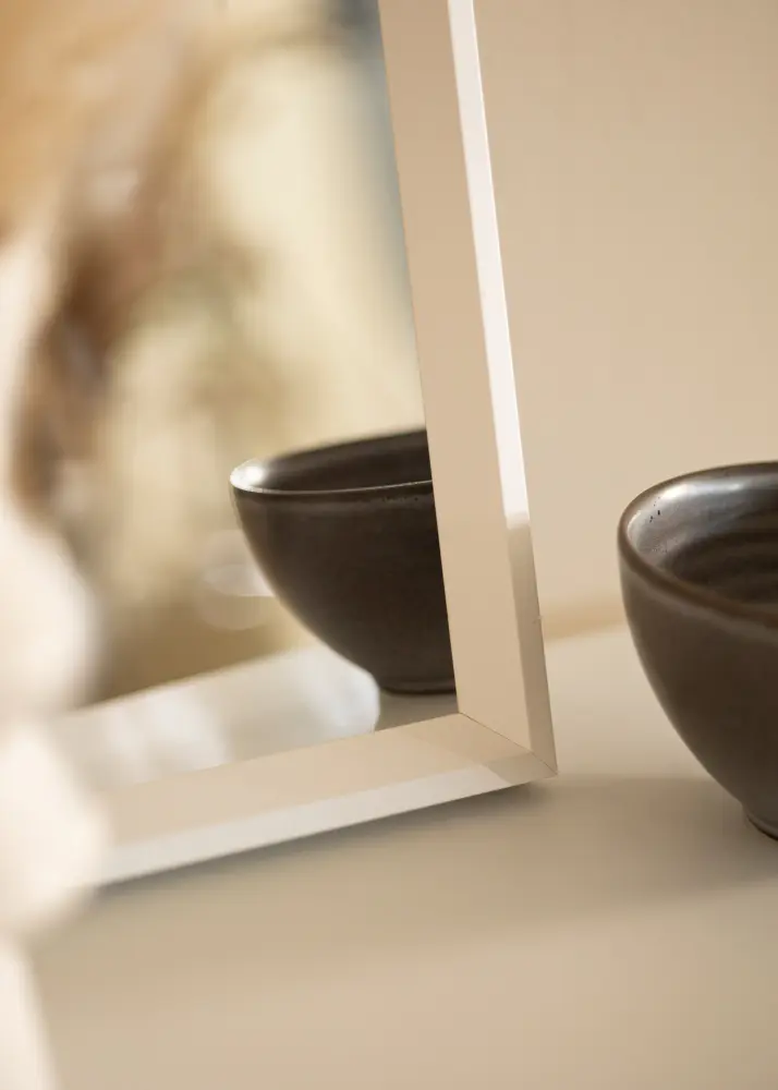 Trendikas valge peegel, mis sobib võrdselt hästi väiksemates suurustes pildiseinale või suure esikupeeglina.