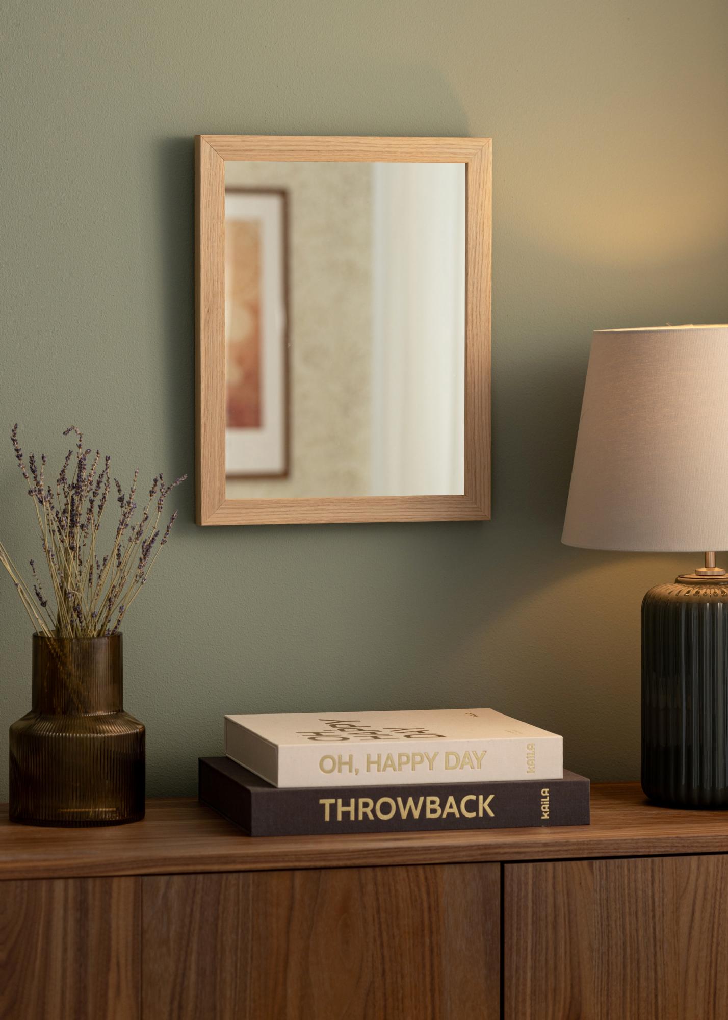 Raam on valmistatud männist, mis muudab selle vastupidavaks ja kergeks. 32 mm sügavus annab peeglile stabiilse konstruktsiooni ja kindla seina külge kinnitamise võimaluse. Tammemustri soe toon toonitab peegli ajatult kaunist disaini ja muudab selle lihtsasti sobitatavaks erinevate sisekujundusstiilidega.