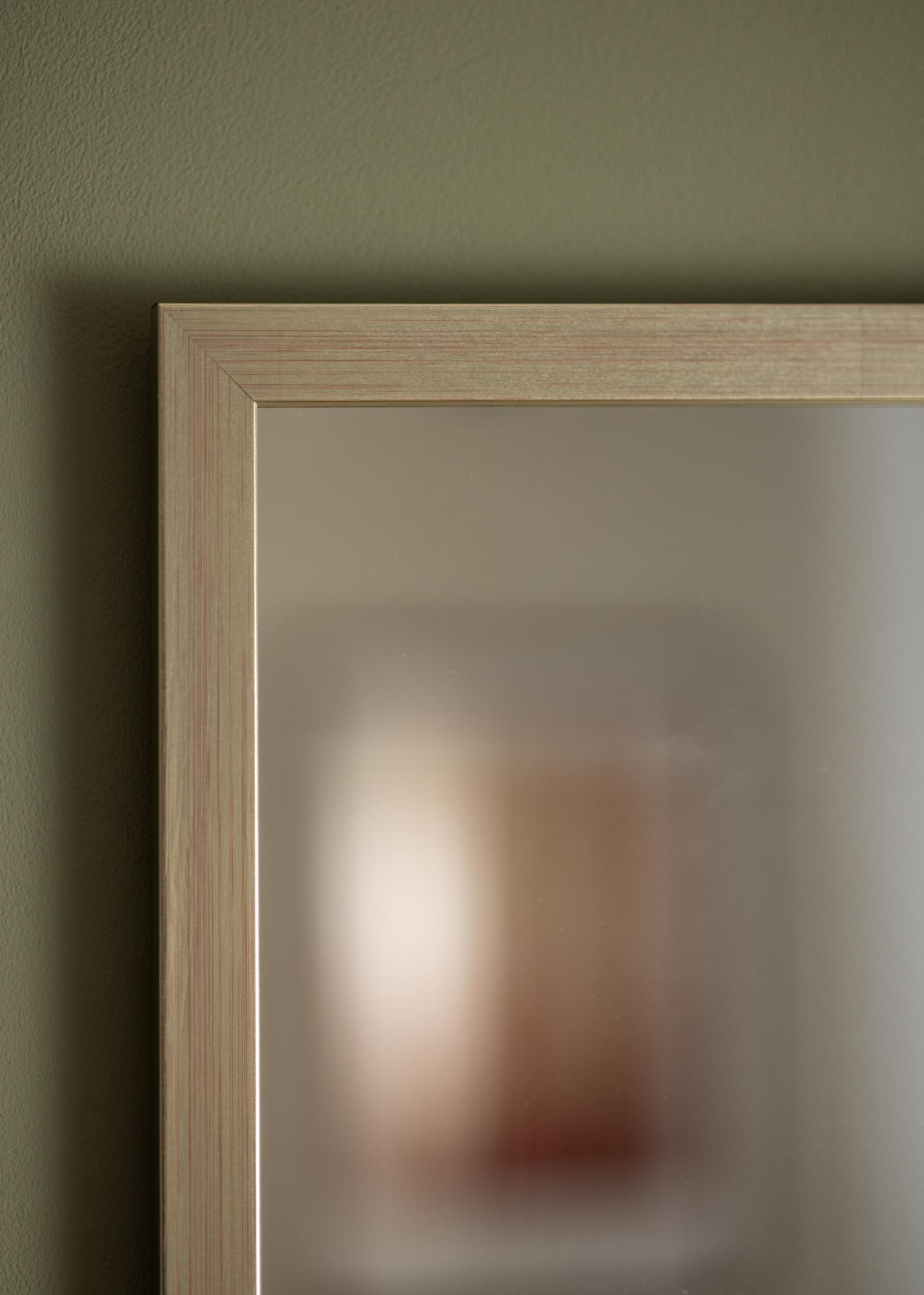 See peegel on valmistatud ajopuidust, värvitud stiilse hõbedase tooniga. Raam on 22 mm lai ja sirge profiiliga, mis loob veidi minimalistlikuma terviku. Paiguta peegel koridori, magamistuppa või elutuppa ja lase sellel kaunilt peegeldada lampide ja akende valgust.