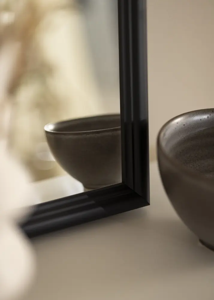 Högbo on kaunilt profileeritud must peegel kõrge kvaliteediga, mis sobib suurepäraselt, kui otsite elegantset peeglit sügava profiiliga, mis ulatub seinast välja.