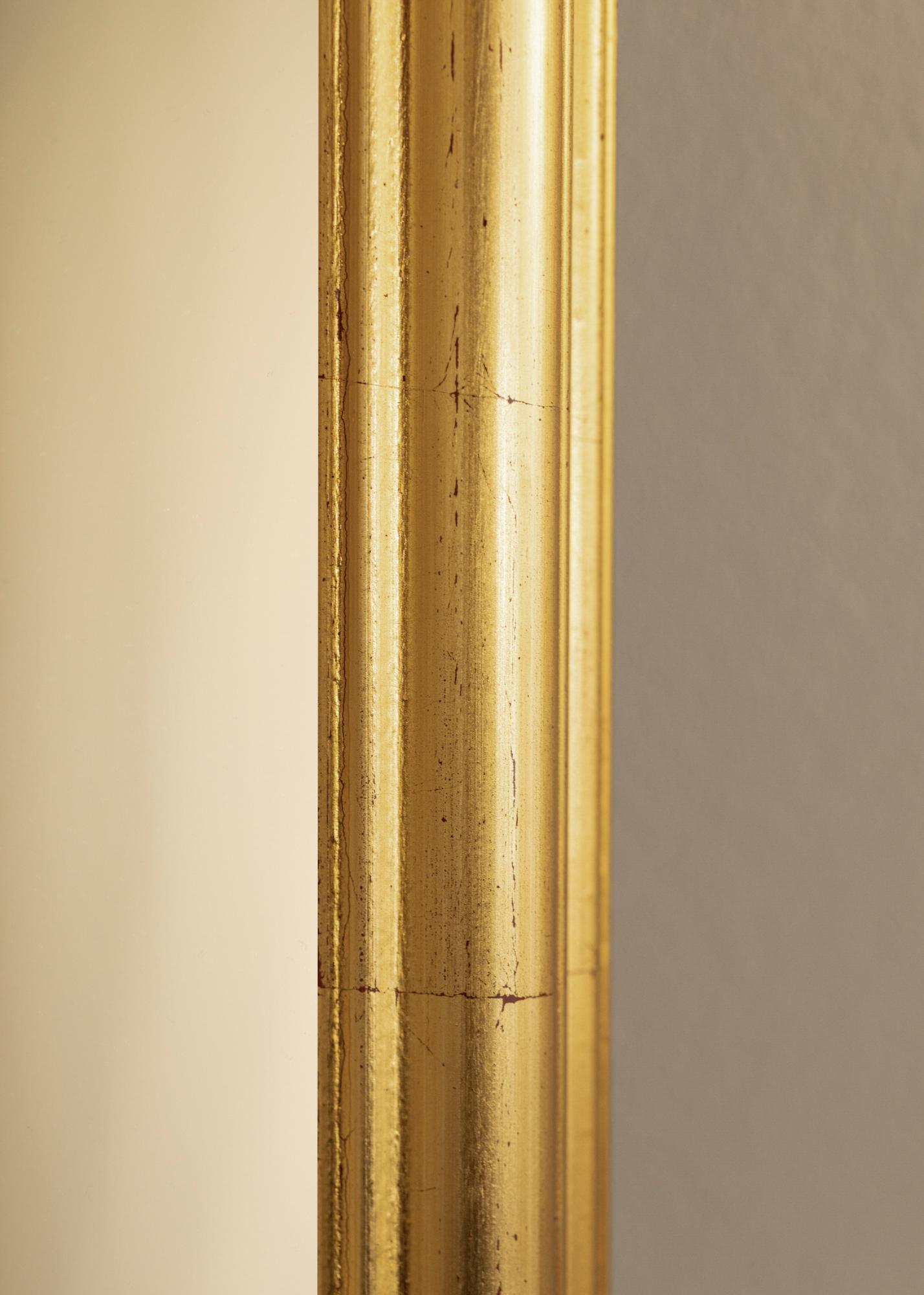 Raam on valmistatud ajouspuust ja sellel on pehmelt kumer profiil, mis aitab kaasa peegli rafineeritud välimusele. Pind on antiikpatineeritud peent krakleerivate mustrite ja väikeste tumedate aktsentidega, andes peeglile autentse vintage-tunde. Kuldne viimistlus loob sooja ja klassikalise atmosfääri, mis on ideaalne, et anda oma kodule ajatut elegantsi.