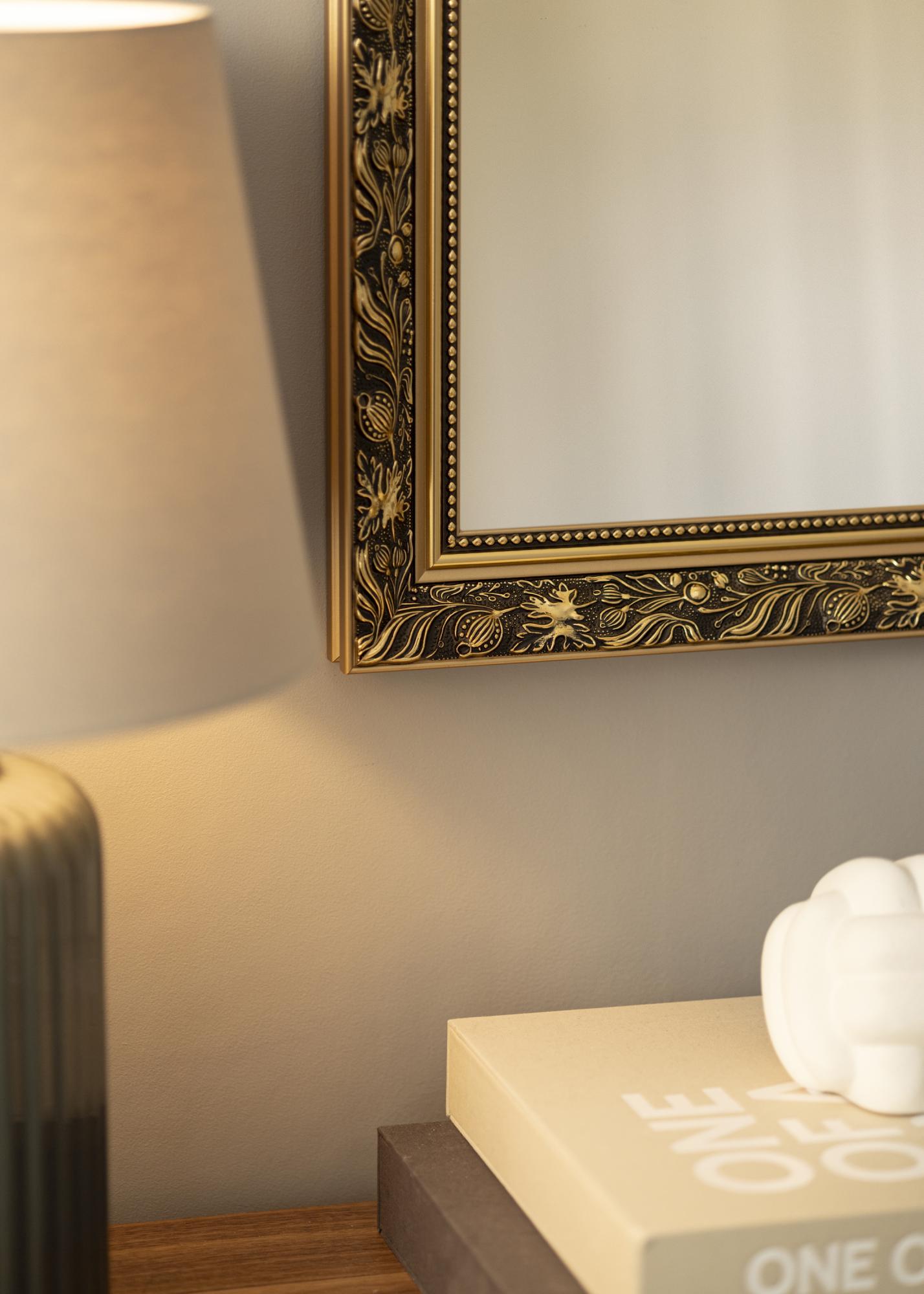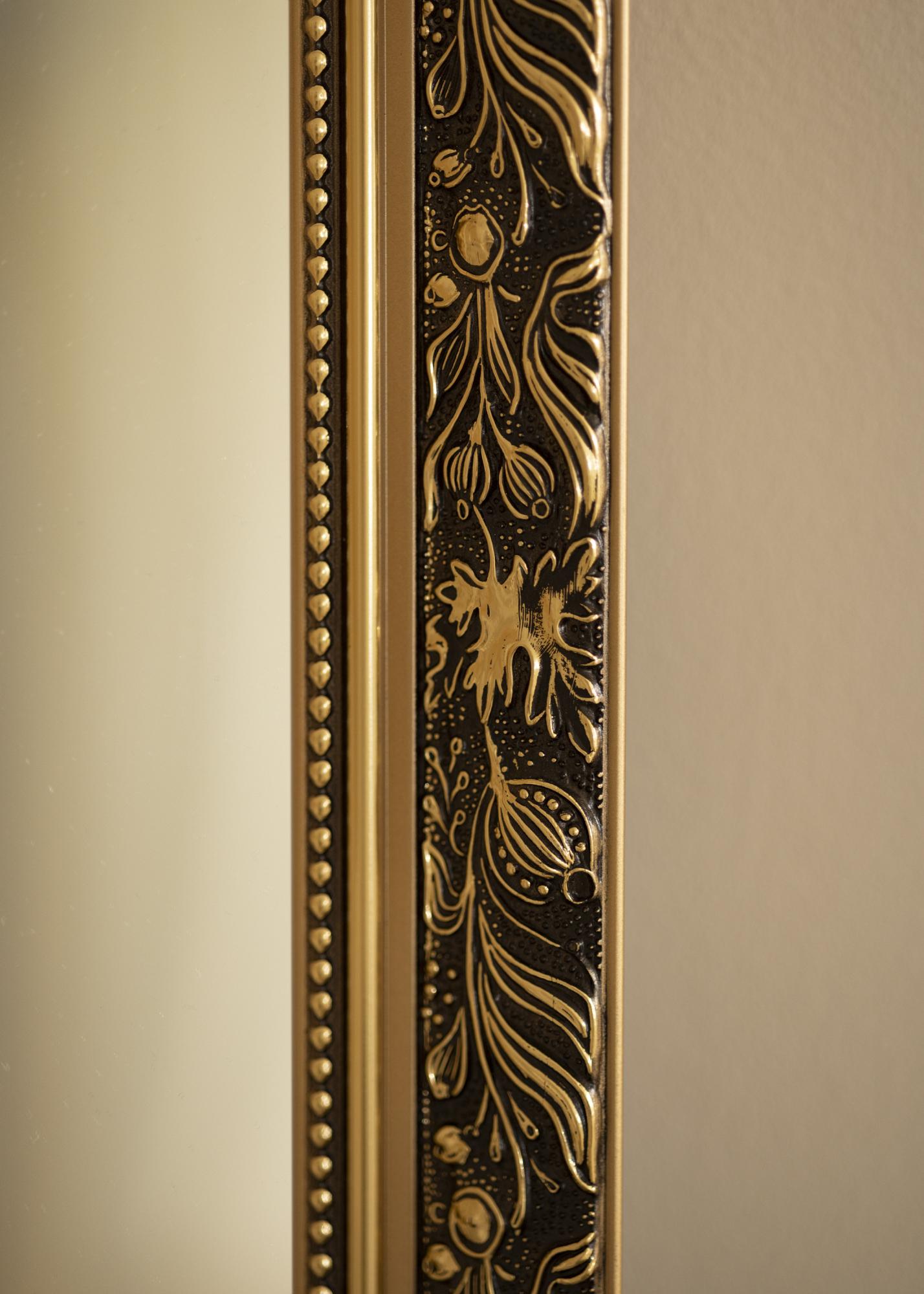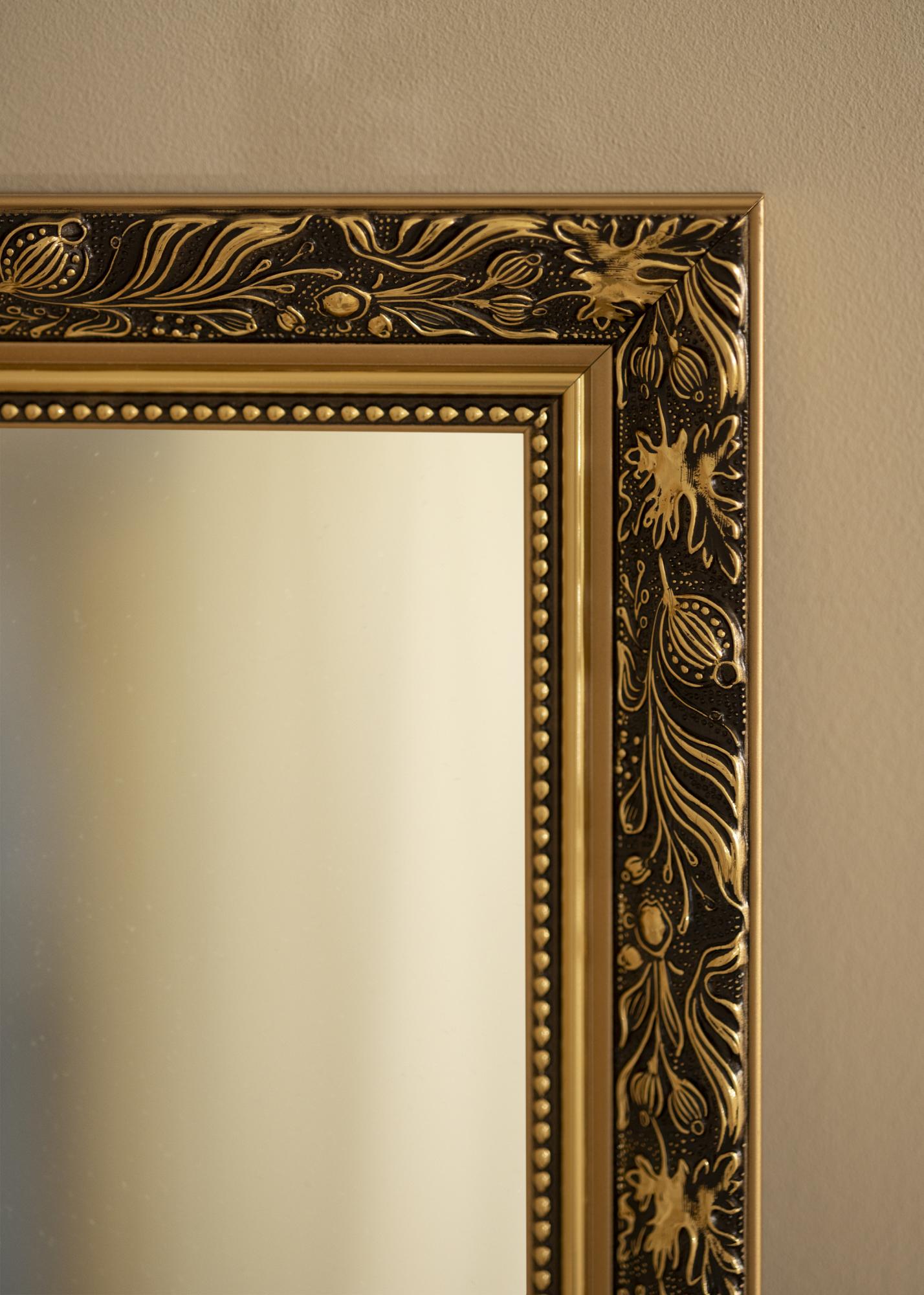 Loo kutsuv ja luksuslik tunne, kuhu iganes otsustad selle kauni peegli paigutada! Peeglil on romantiliselt kujundatud raam keeruliste mustrite, sirgete servade ja mitmetasandiliste pärlidetailidega. Kuldne värv sobib ideaalselt kokku teiste sisustuselementidega kuldses toonis, pastellvärvides, mustas ja valges!
