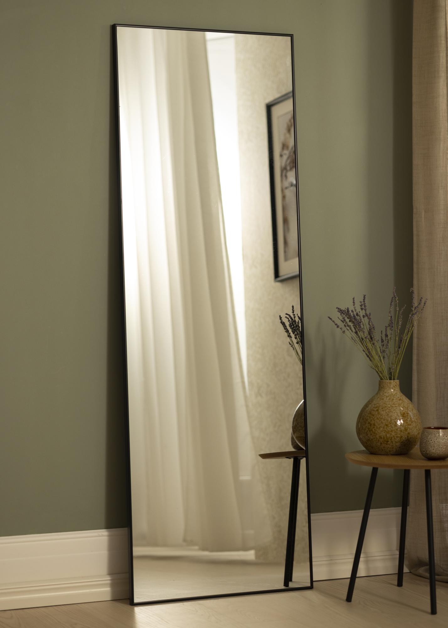 Avastage meie 60x165 cm põrandal seiseva peegli stiilne elegants, mis on funktsiooni ja disaini täiuslik kombinatsioon. See sihvakas, ristkülikukujuline peegel on elegantselt ümbritsetud musta alumiiniumraamiga, andes igale ruumile kaasaegse ja rafineeritud ilme. Selle helde suurus ja klassikaline kuju muudavad selle praktiliseks ja dekoratiivseks elemendiks teie kodus.