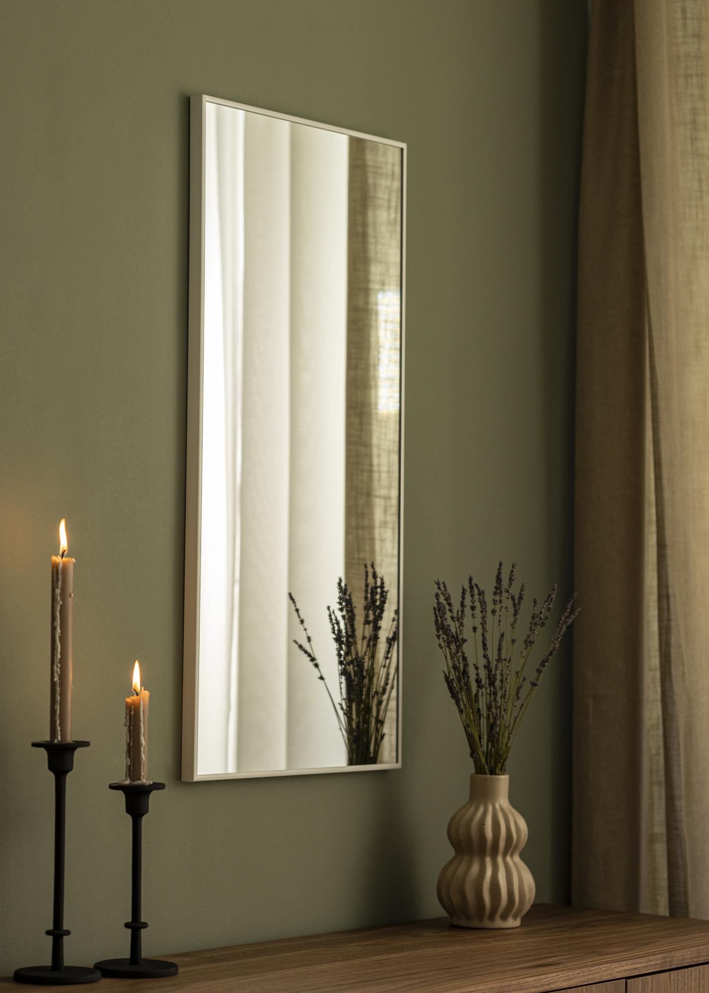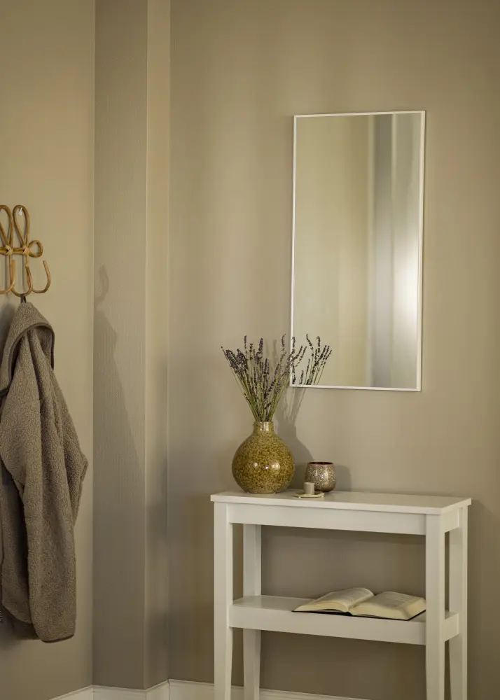 Loo oma koju ruumi ja valguse tunne selle stiilse peegliga. Selle mõõtmed on 40,5x80,5 cm, mistõttu on see ideaalne suurema ruumi illusiooni loomiseks või praktiliseks detailiks esikus. Valge alumiiniumraam annab modernse ilme, säilitades samal ajal disaini puhtuse ja ajatuse.