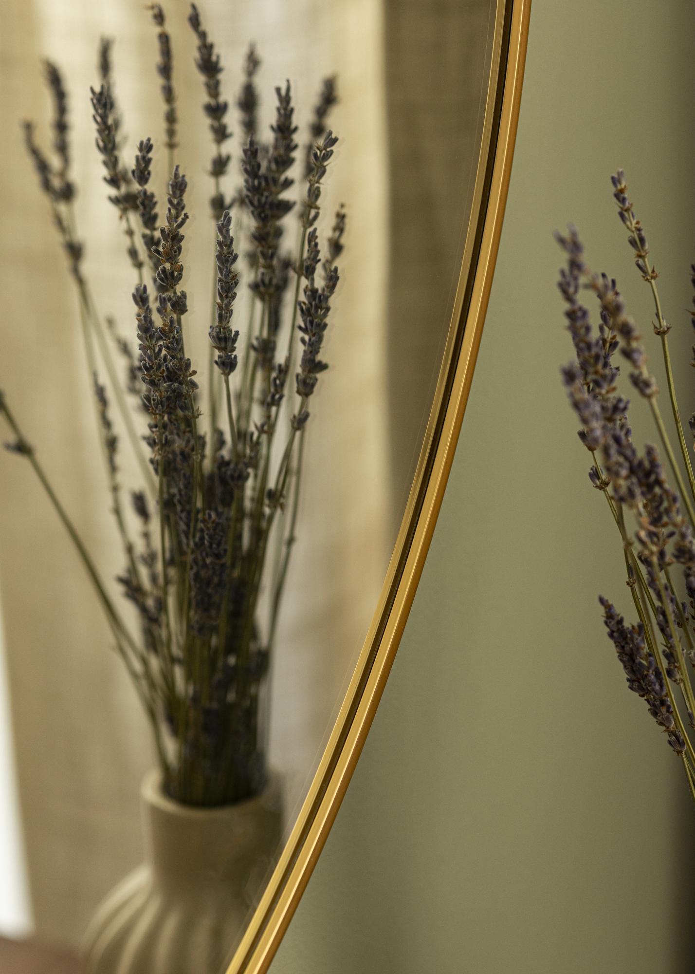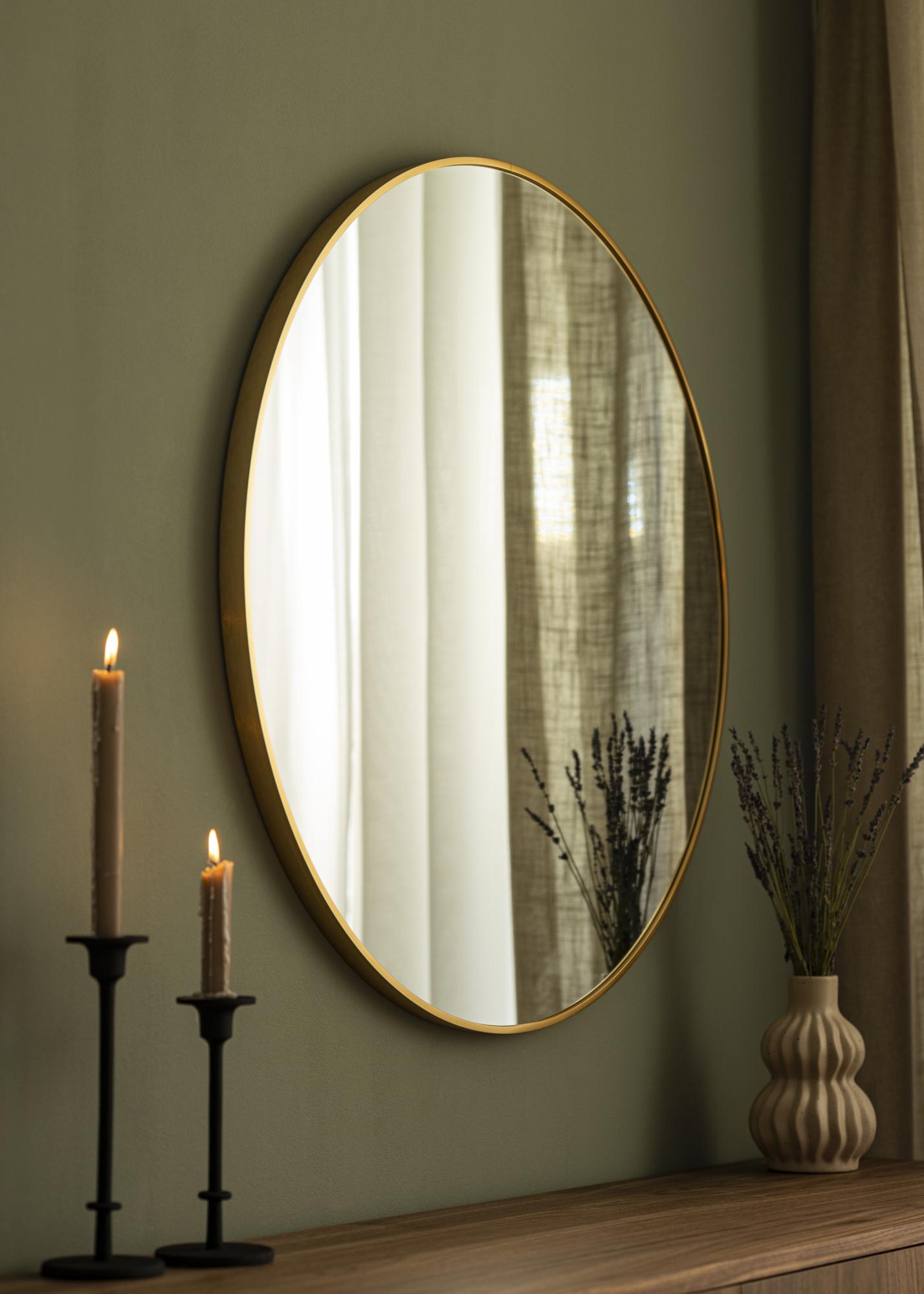 See seinapeegel on klassikalise ümmarguse kujuga, mida ümbritseb elegantne kuldne alumiiniumraam. Raami värv ja läige loovad luksusliku atmosfääri ja saavad pilkupüüdvaks detailiks igal seinal. Ümmargune kuju aitab kaasa pehmele ja harmoonilisele tundele ruumis.