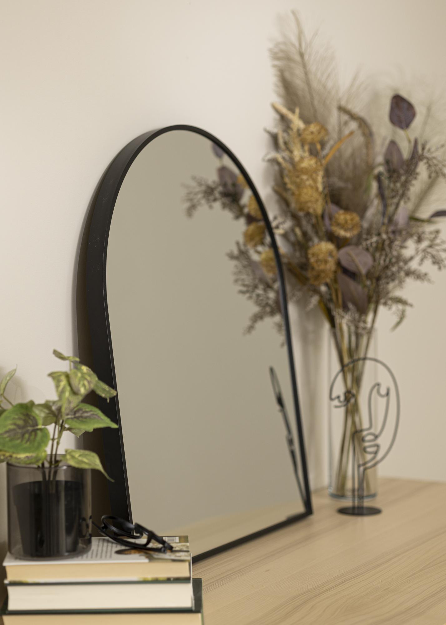 See on suurepärane valik neile, kes otsivad modernse disainiga peeglit trendika kaarjalt kujundatud ja stiilse musta raamiga. Peegliraam on 28 mm sügav ja valmistatud metallist. See peegel on kindel dekoratiivne detail esikus või elutoas, kus see peegeldab kogu ruumi valgusallikate ilu. Vastupidav materjal võimaldab seda kasutada ka vannitoas.