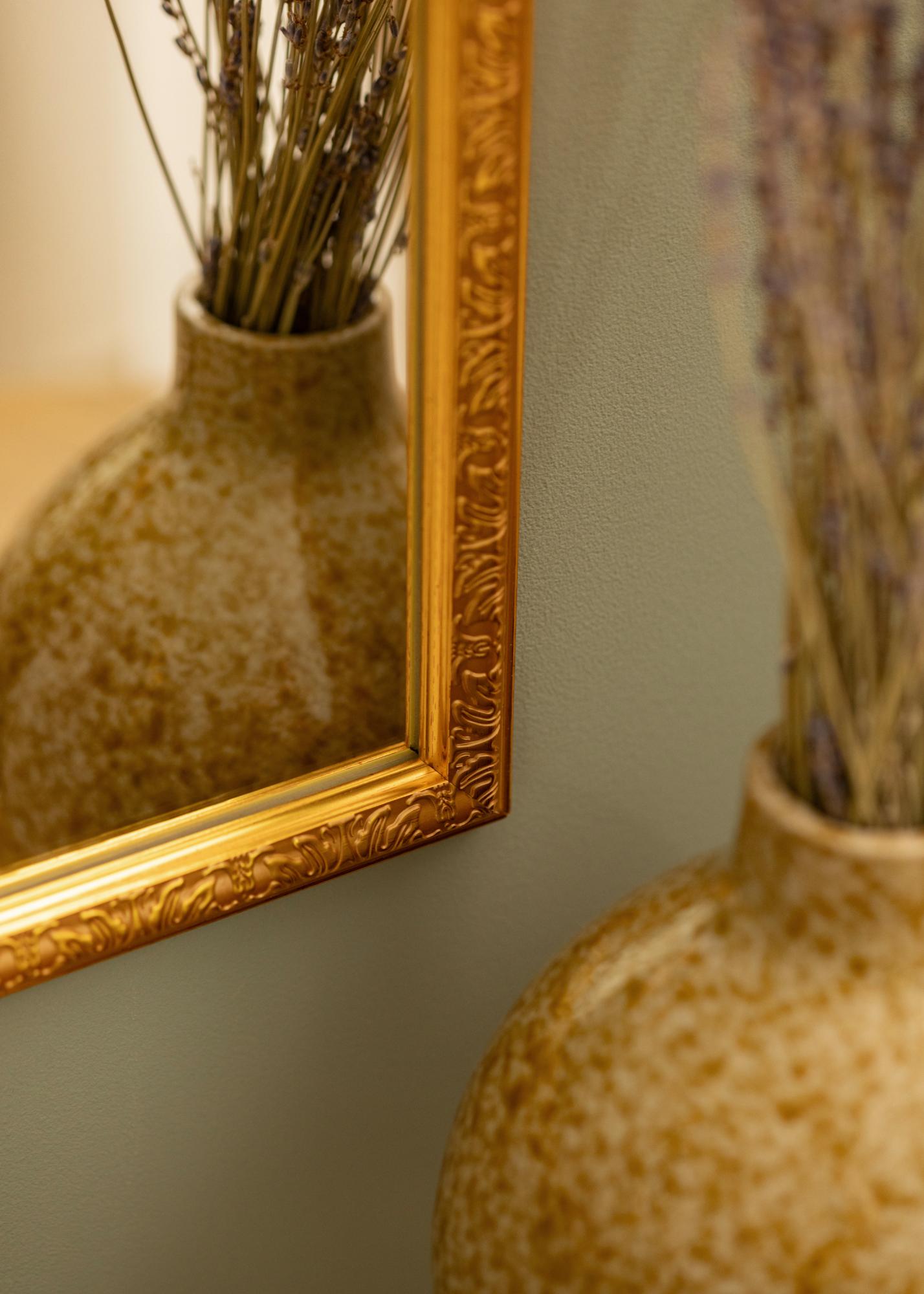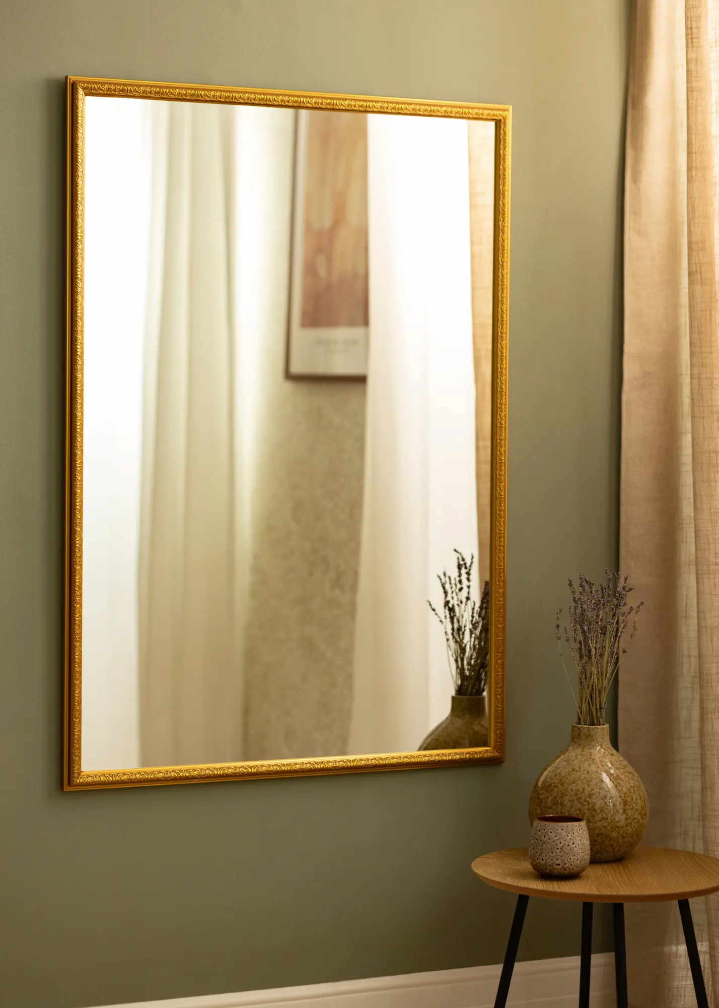 Kui otsite luksuslikku kullavärvi peeglit, võite otsimise lõpetada nüüd. Nostalgia Kuld on seinapeegel 2,8 cm laia raamiga, millel on elegantne profiil ja kaunis dekoratiivne muster. Peegliklaas peegeldab teie toas valgust, samal ajal kui peegel ise on stiilne detail teie seinal. Tagaküljel on seinakinnitus lihtsama riputamise jaoks.