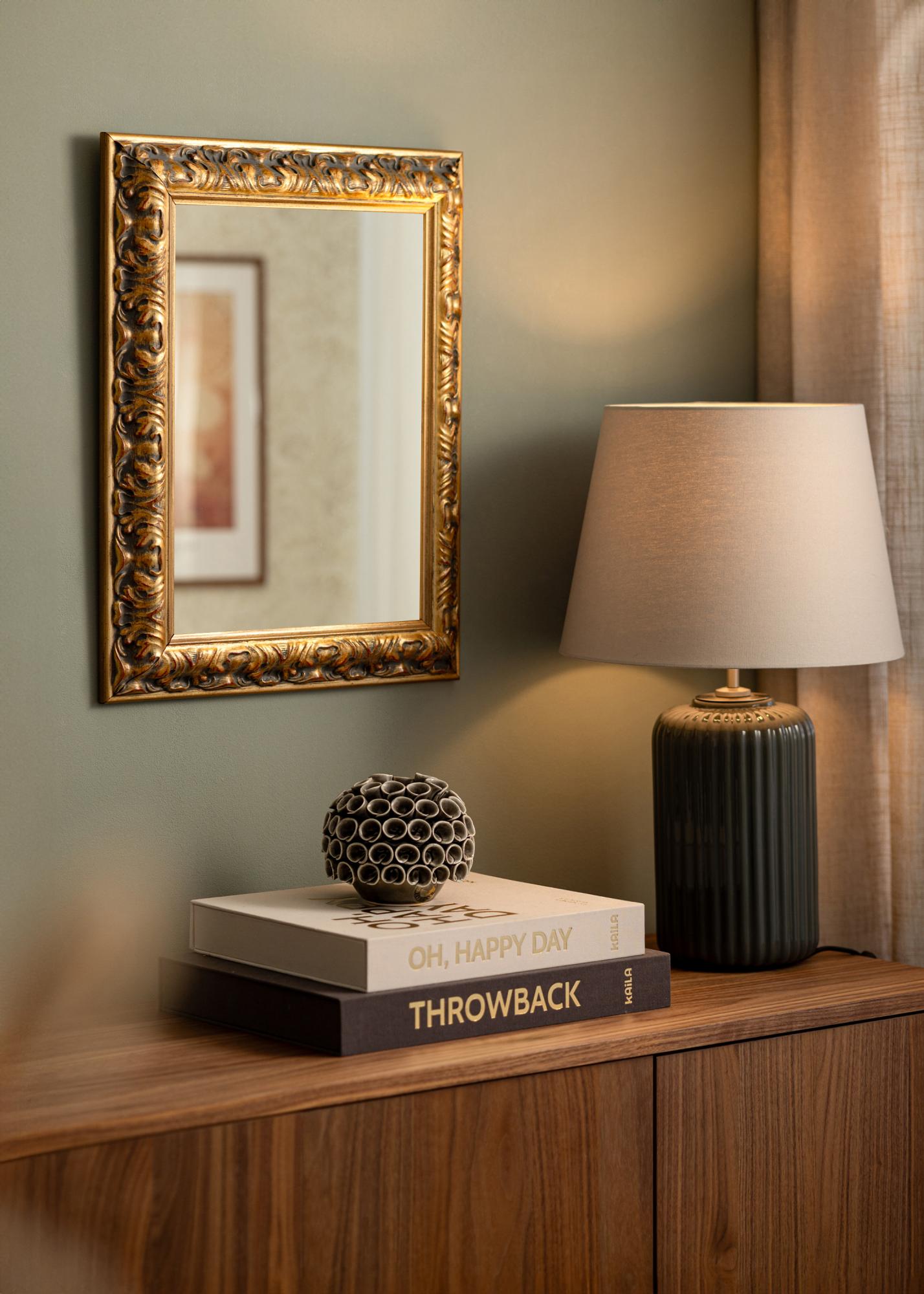 Peegel Odin Kuld/Punane on elegantne ja stiilne peegel, mis valmistatakse vastavalt sinu enda mõõtudele. Oma ornamentaalse kuldraami ja antiikse patinaga muutub see mis tahes ruumis pilkupüüdvaks elemendiks. Raam, mis on 64 mm lai ja 38,5 mm sügav, on valmistatud männipuidust ja kaunistatud barokistiili detailidega. Skulptuursed reljeefsed mustrid annavad peeglile unikaalse iseloomu ja neid rõhutab peen kontrast kulla ja tumedate aktsentide vahel.