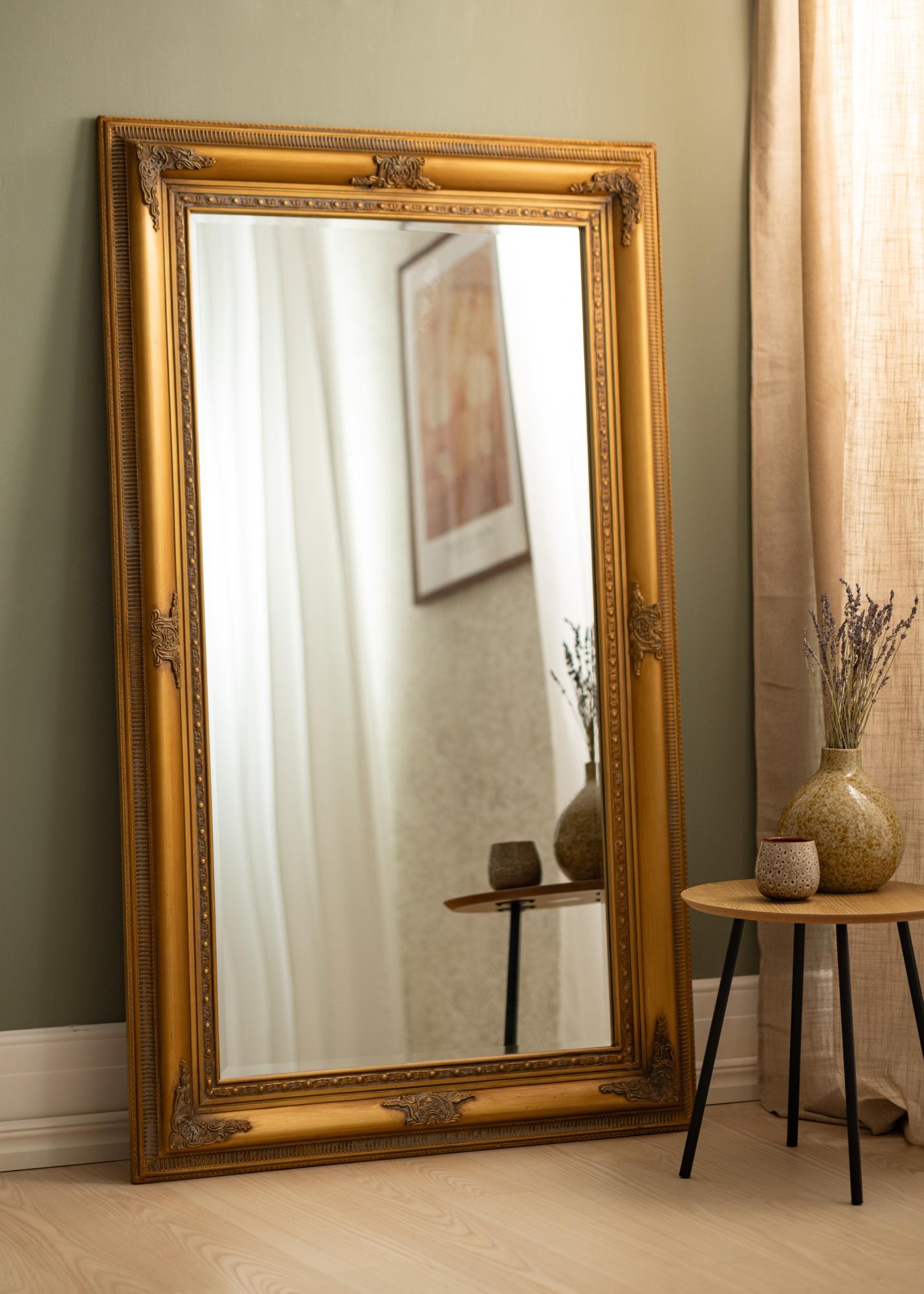 Peegel kauni profiiliga kullatoonis, millel on antiikne tunne, kaunistatud lillede ornamentidega. Peegliraami klassikaline stiil sobib vanemate mööblitega sisekujundusse, kuid seda saab kasutada ka põneva kontrasti loomiseks modernses tänapäevases sisekujunduses. Peegel sobib hästi nii esikusse, magamistuppa kui ka garderoobi ning tuleb esile koos messingi või kuldsetes toonides sisustusaksessuaaridega.