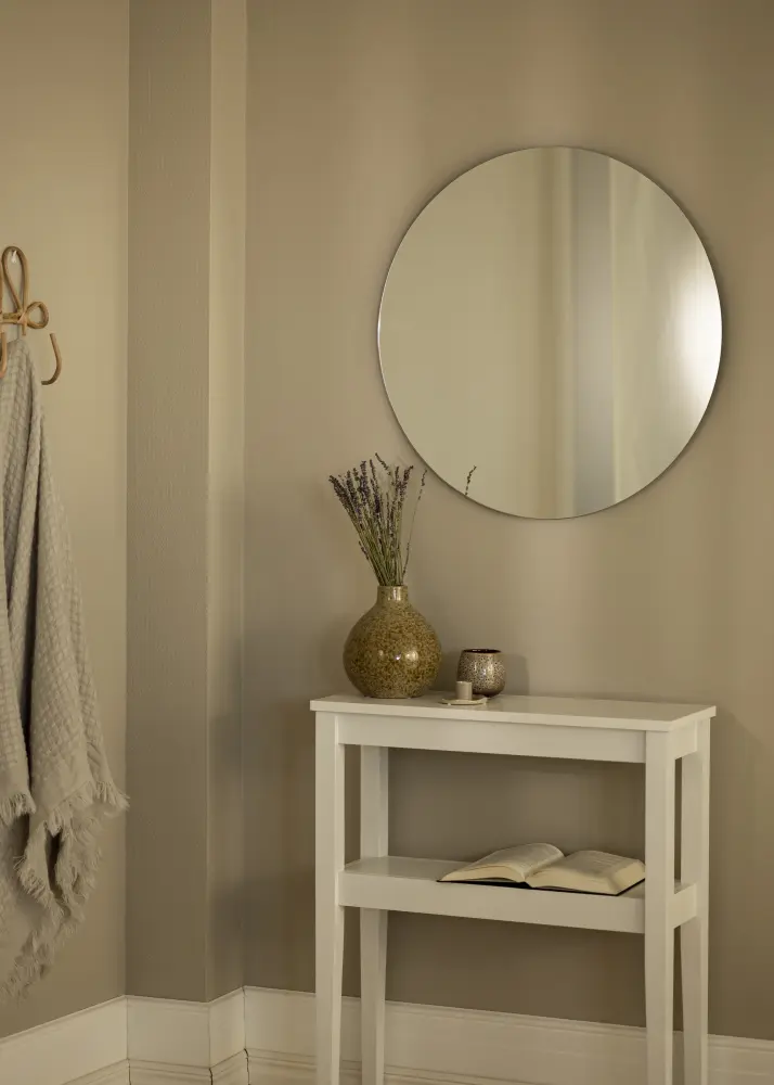 Avastage meie stiilse ümmarguse peegli elegants ja lihtsus, mis sobib ideaalselt teie koju kaasaegse elemendi lisamiseks. Selle peegli läbimõõt on 70 cm, pakkudes helde peegelduspinna, mis on nii praktiline kui ka dekoratiivne. Selle ümmargune kuju lisab ruumi pehmust ja harmooniat, muutes selle ideaalseks valikuks kõigile, kes otsivad minimalistlikku disaini.