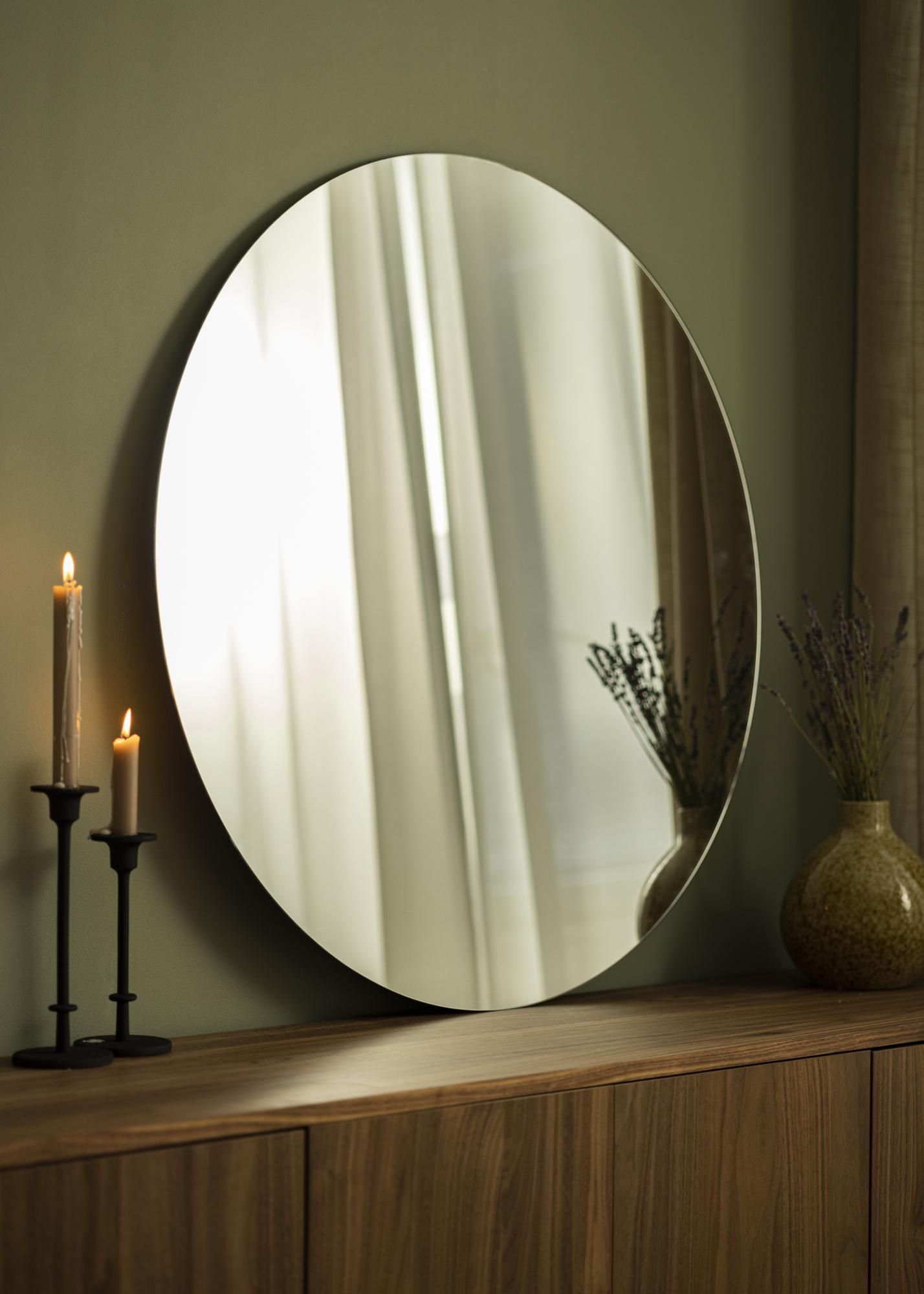 Avastage meie ümmarguse peegli elegantne lihtsus, mis on ideaalne, et lisada teie koju ruumi ja valguse tunnet. Läbimõõduga 90 cm saab sellest peeglist suurepärane detail seinal, samas kui see on piisavalt diskreetne, et sulanduda erinevatesse sisustusstiilidesse. Selle ümmargune kuju pakub pehmet kontrasti ruumi ülejäänud joontele ja loob teie sisekujunduses harmoonilise efekti.