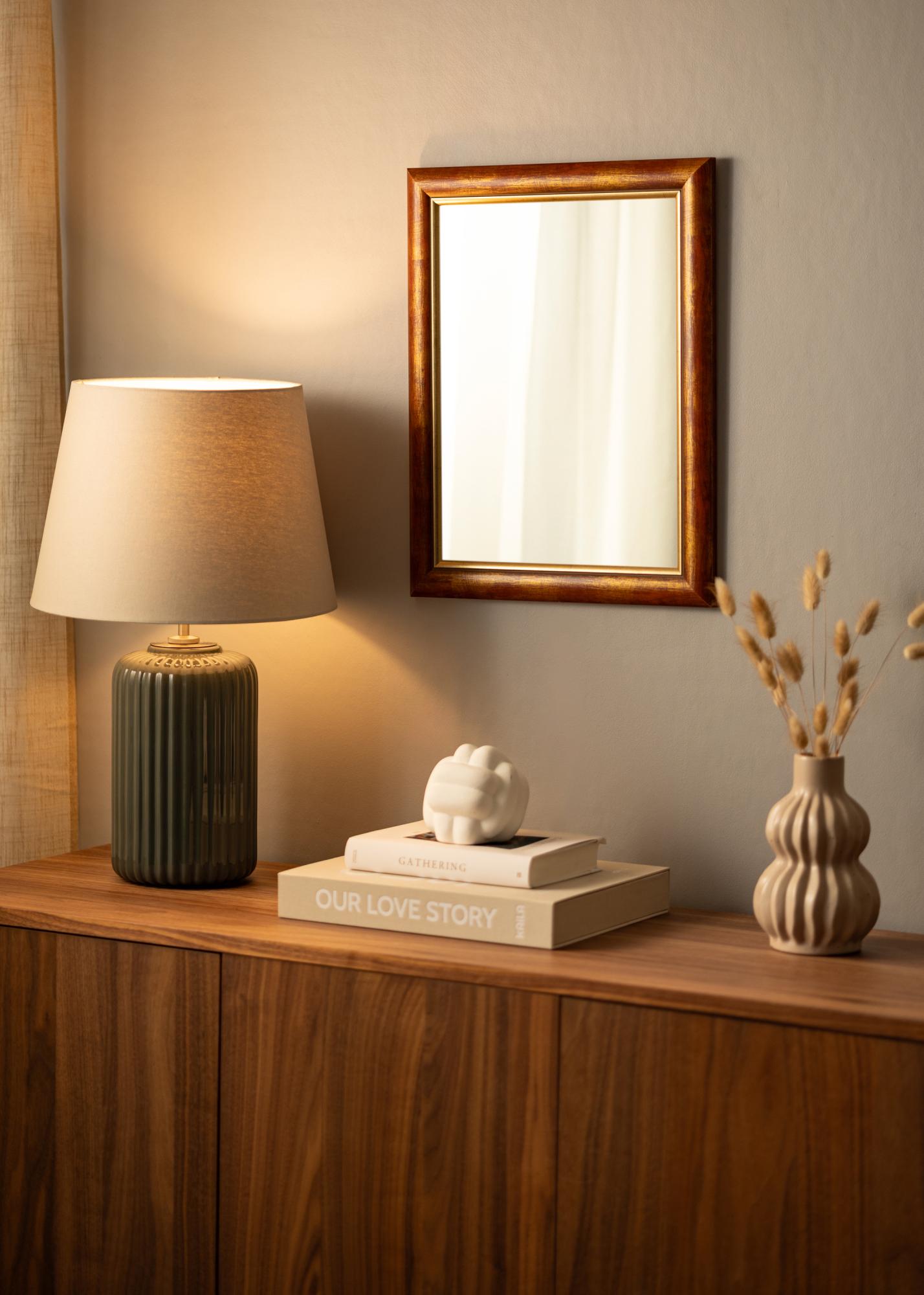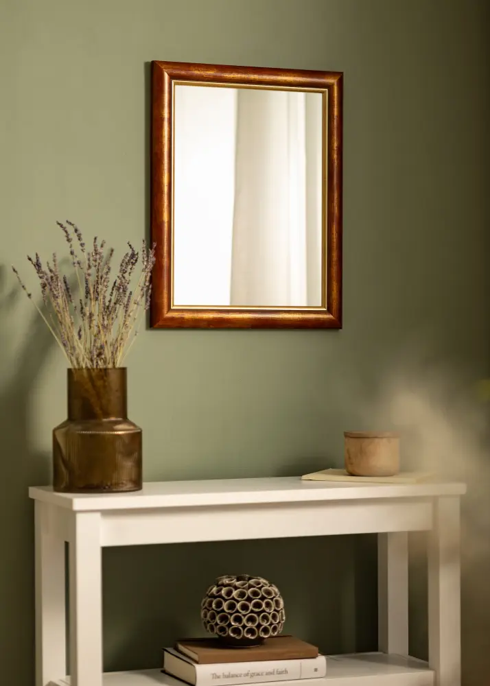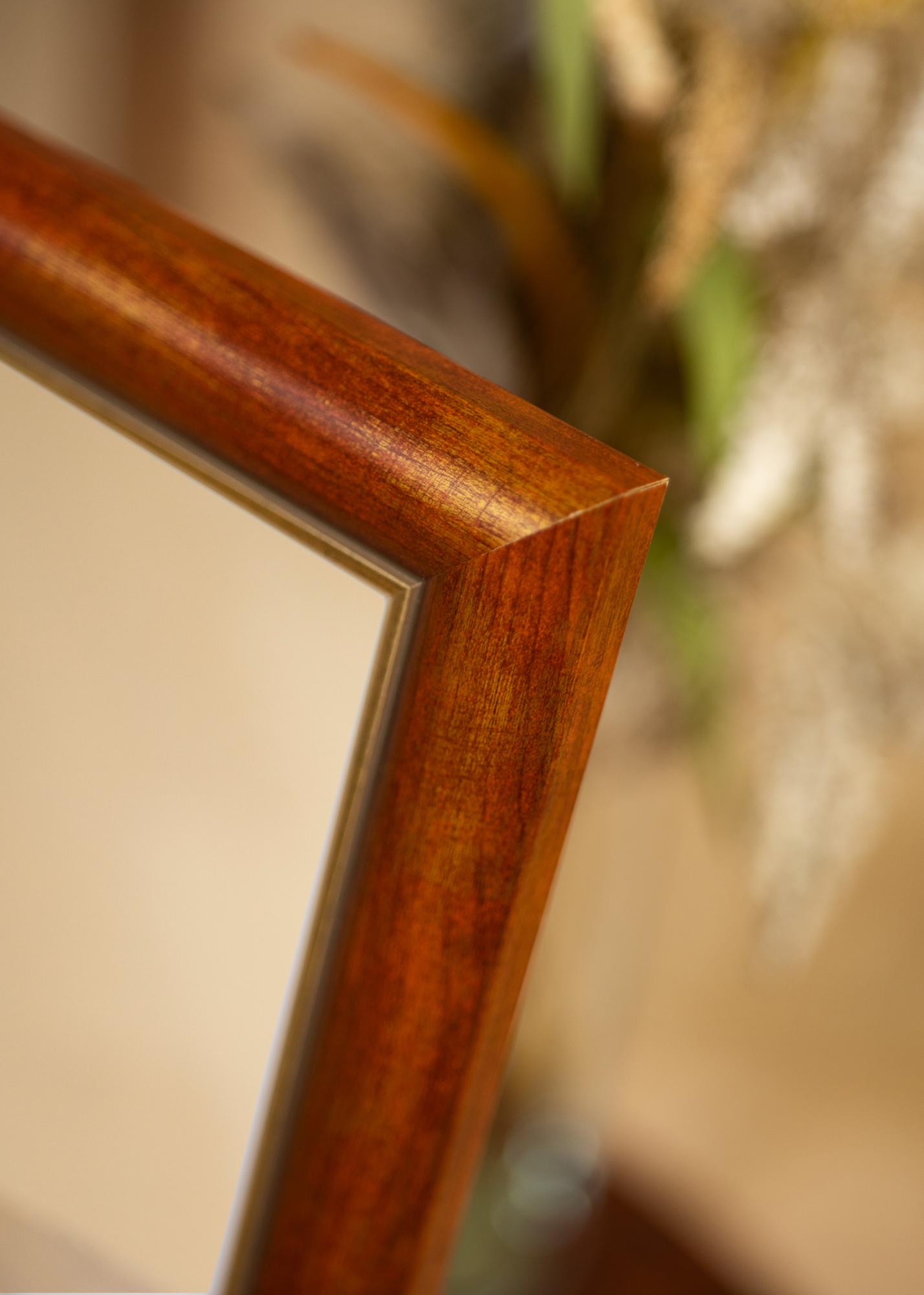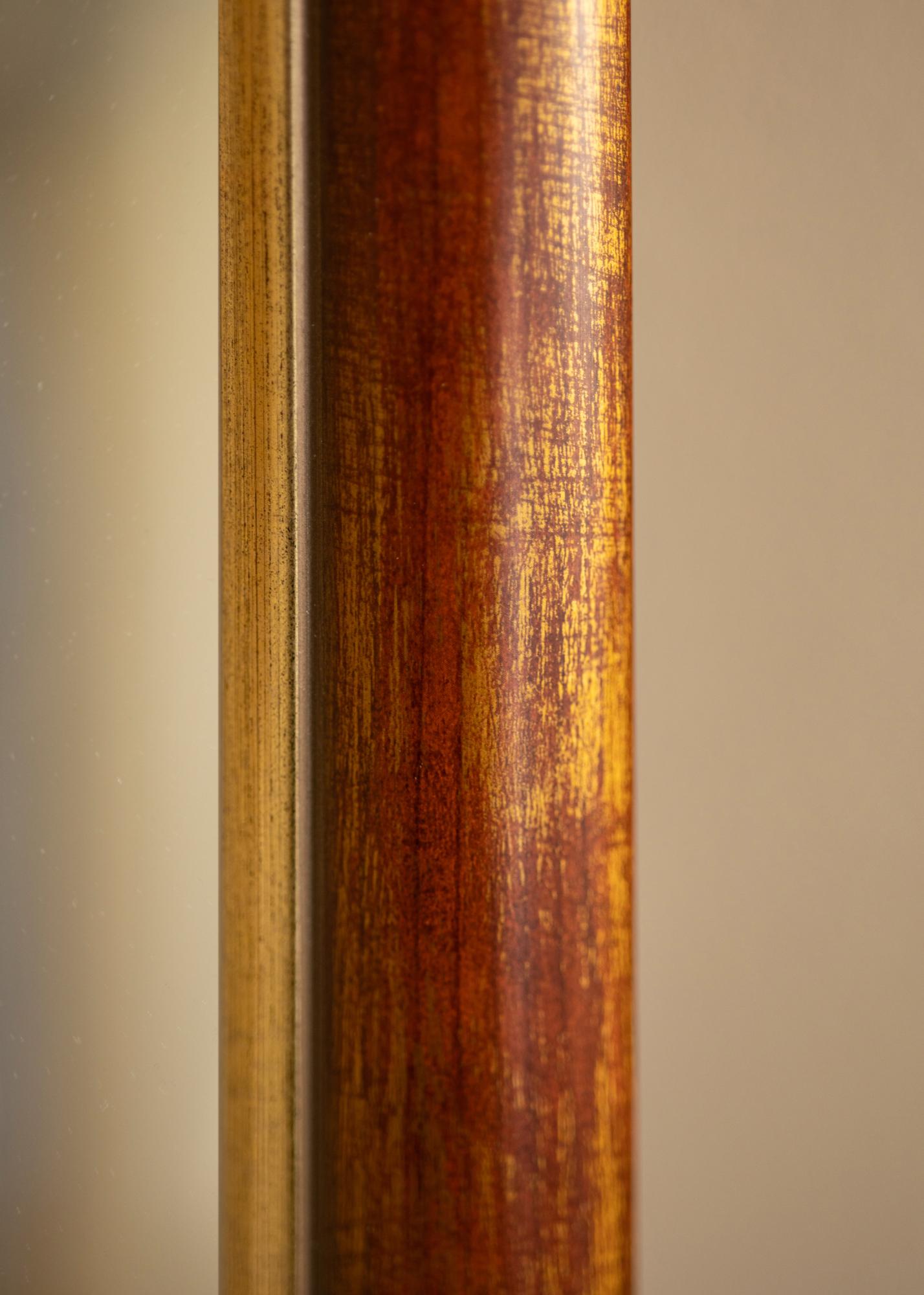 Ajatu puidust liist, mis on valmistatud Soomes, kauni punakaskollase puidupinnaga ja kuldse servaga kõige peegliklaasi juures. Raamil on lai profiil, mis on tervelt 41 mm ja sügavus 19 mm, mis annab teie peeglile lisasügavuse.