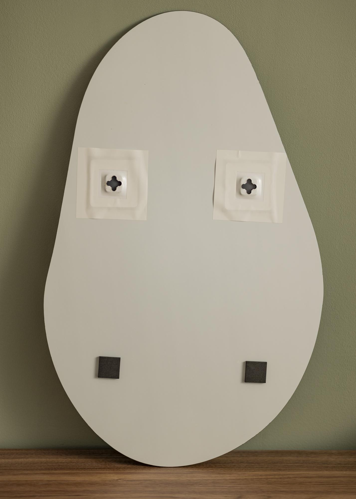 Peeglil on seinale kinnitused tagaküljel. See võimaldab peeglit hõlpsamini paigaldada näiteks kummutile magamistoas, abilaudadele elutoas või mõnes muus kohas, kuhu sobiks elegantne seinapeegel.