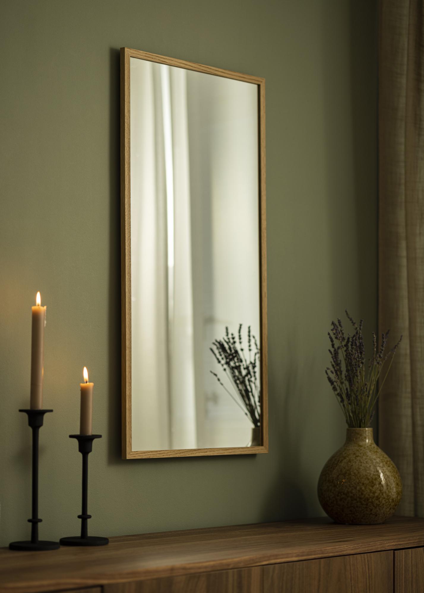 See ristkülikukujuline peegel on raamitud tugevasse tammepuusse, mis annab teie sisustusele sooja ja orgaanilise tunde. Looduslik puidust raam ei ole mitte ainult ilus vaadata, vaid aitab kaasa ka kestlikule ja ajatule disainile, mis püsib aastaid.