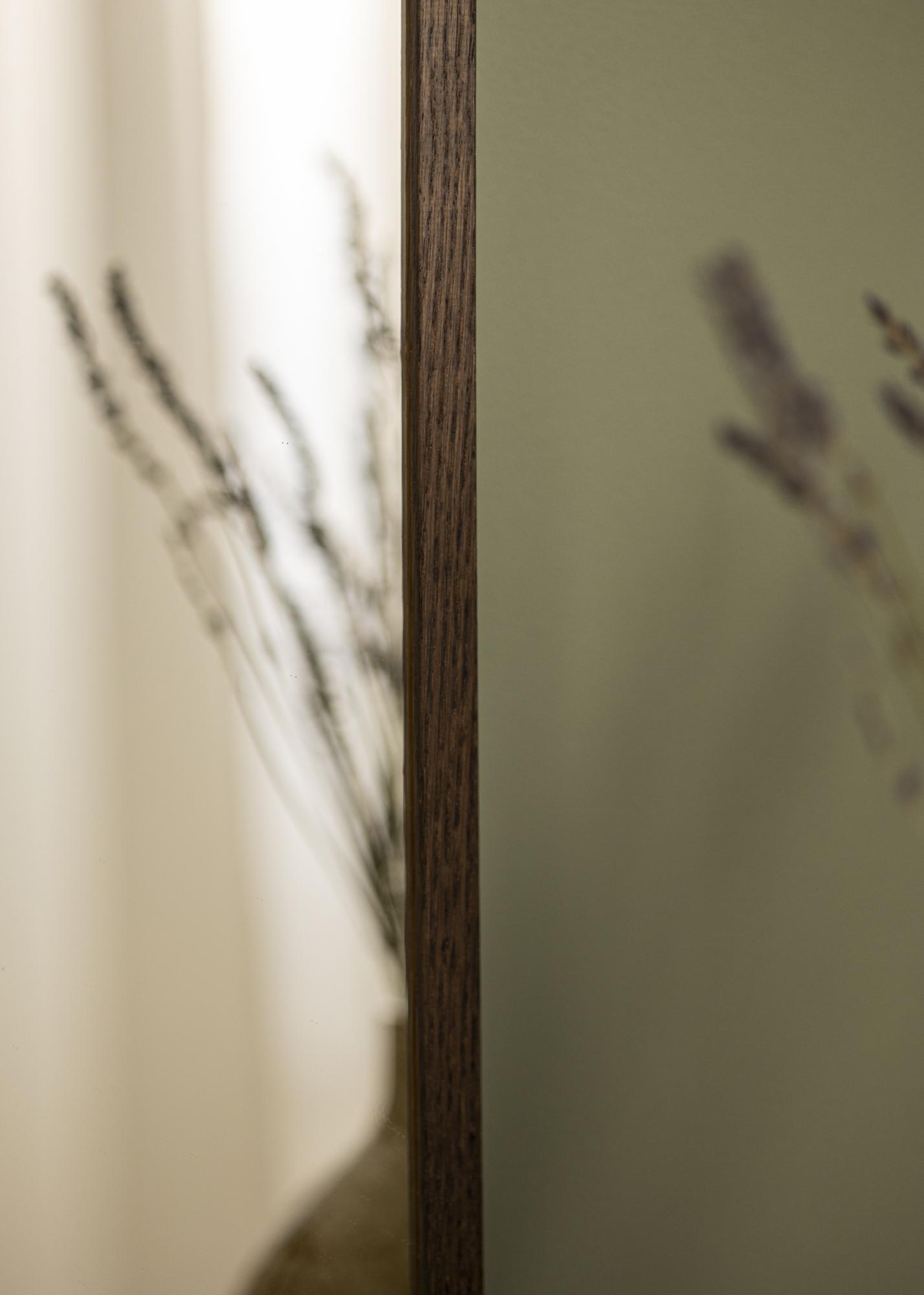 Peegli raam on valmistatud ehtsast tammepuust ja sellel on sügav tume tamimeele. See püüab koheselt tähelepanu. Paks raam annab kindla tunde ja lisab peegli üldisele kohalolule. See peegel pole mitte ainult praktiline väärtus, vaid ka kunstiteos, mis täiendab nii kaasaegseid kui ka traditsioonilisi interjööristiile.