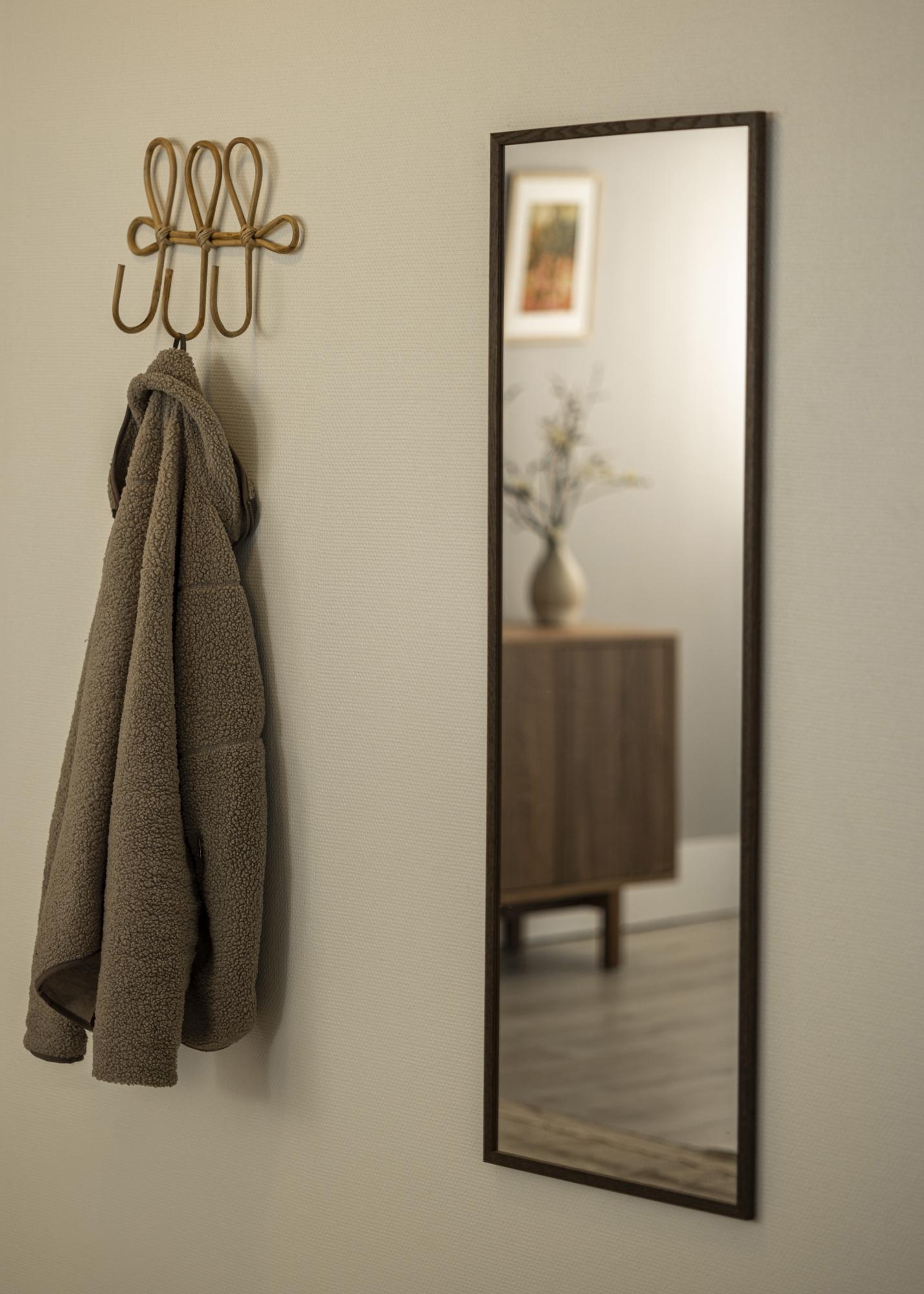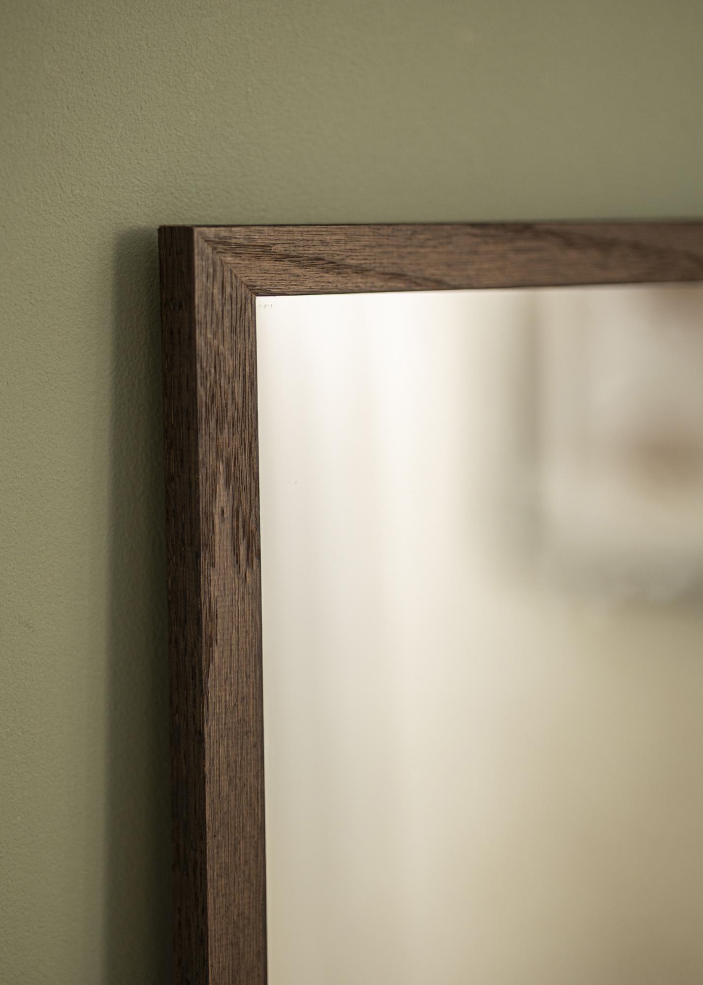 Peegli raam on valmistatud ehtsast tammepuidust ja sellel on sügav tume tammetoon, mis kohe tõmbab pilku. Raami paksus lisab robustsuse tunnet ja annab peeglile seinal märkimisväärse kohalolu. See peegel pole mitte ainult praktiline aksessuaar, vaid ka kunstiteos, mis täiendab ja tõstab esile teie sisekujundust.