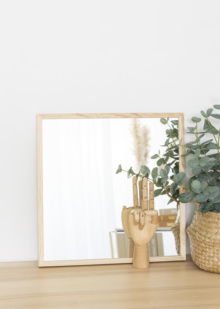 See on õhuke puitraamiga seinapeegel, mis sobib suurepäraselt nii modernsesse kui ka boheemlikumasse koju. Peegel on skandinaavia disaini parim näide, millel on värvimata peegliklaas ja hele puitraam sirge profiiliga, mis koos loovad heleda ja värske mulje.