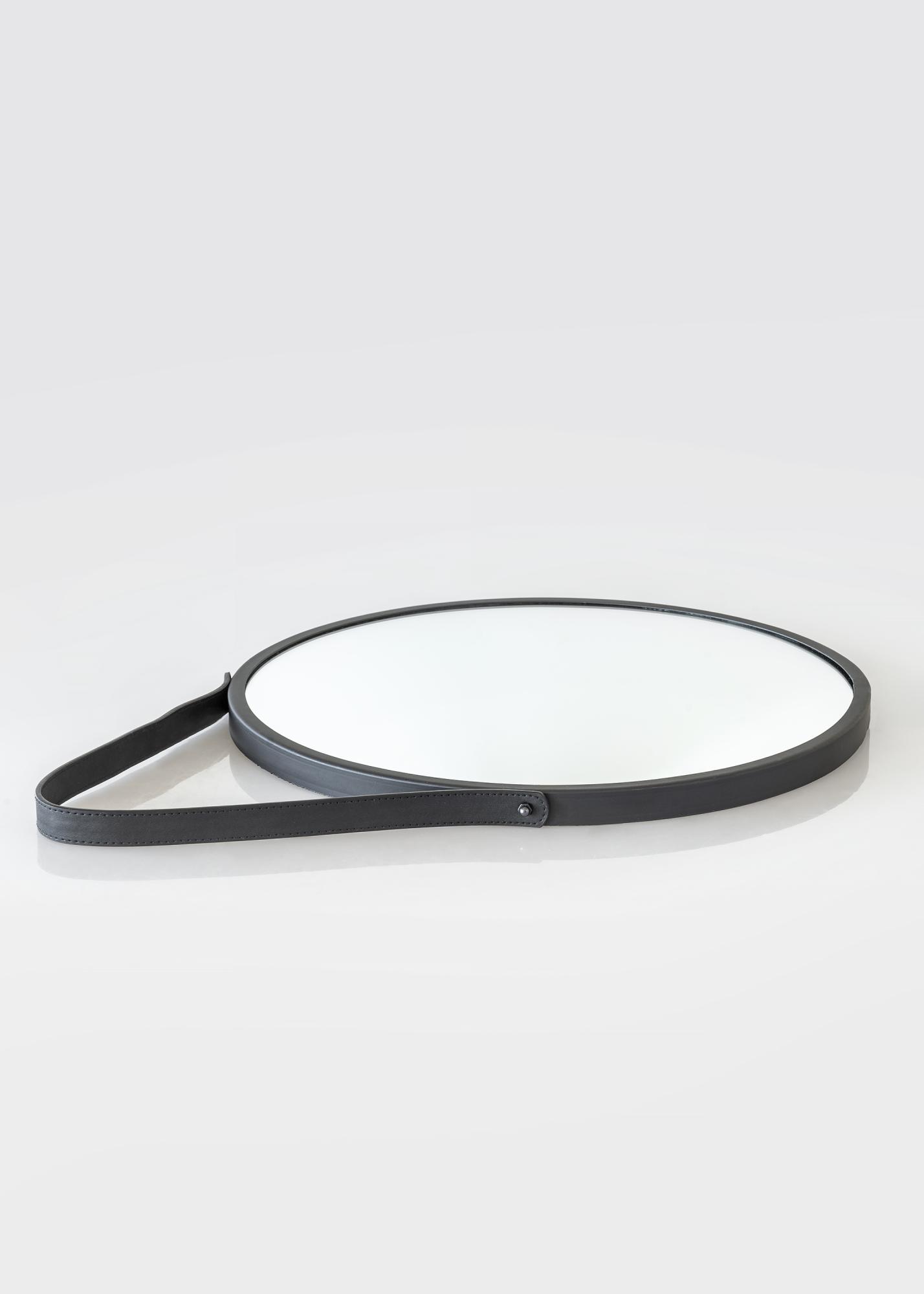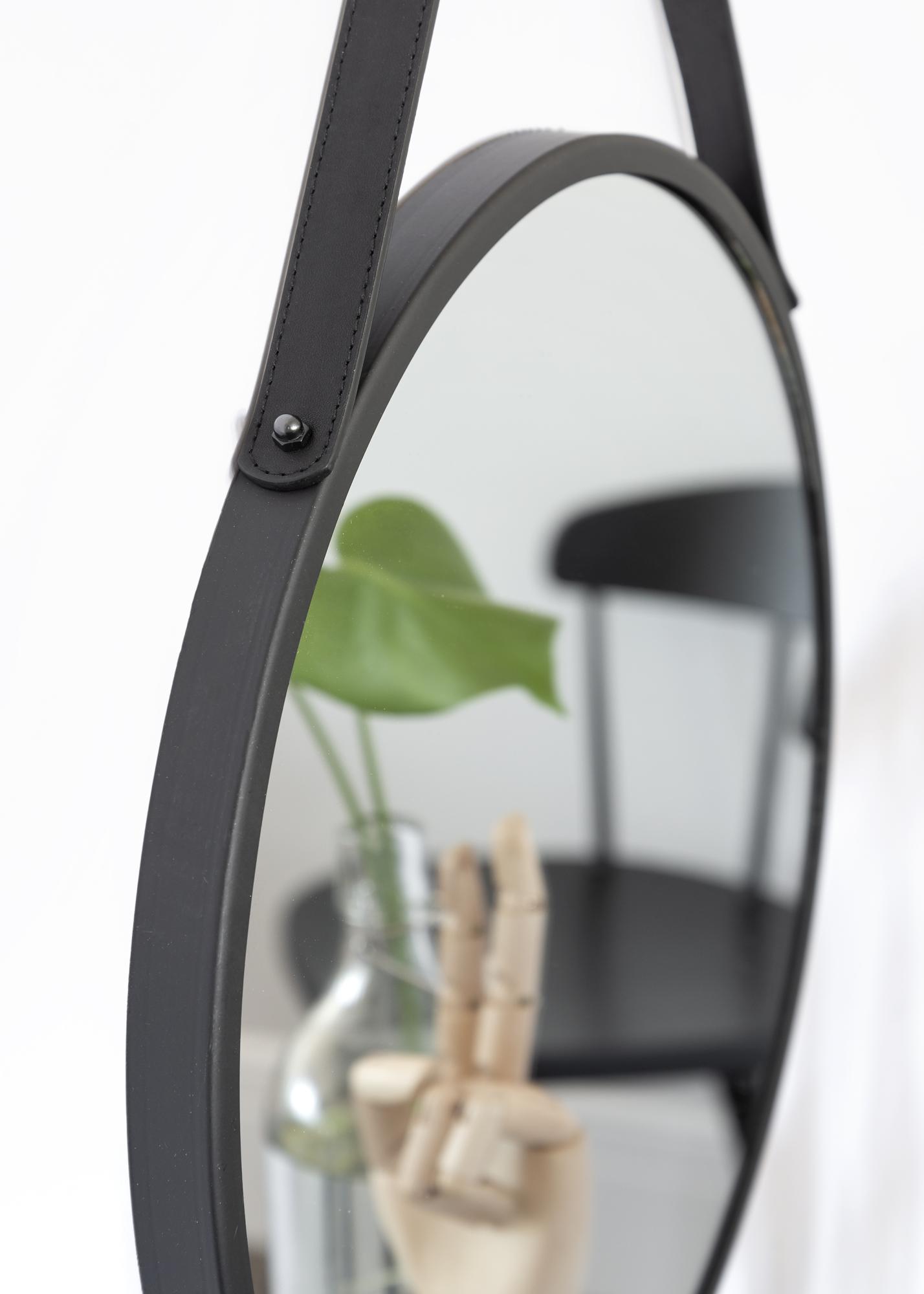 Trapani on ümmargune ja stiilne seinapeegel musta metallraamiga. Ümmargune peegel ripub kaunilt seinal elegantses ja funktsionaalses PU-nahast (kunstnahast) rihmas. Kaunista oma esikut, magamistuba või elutuba selle väga dekoratiivse peegliga.