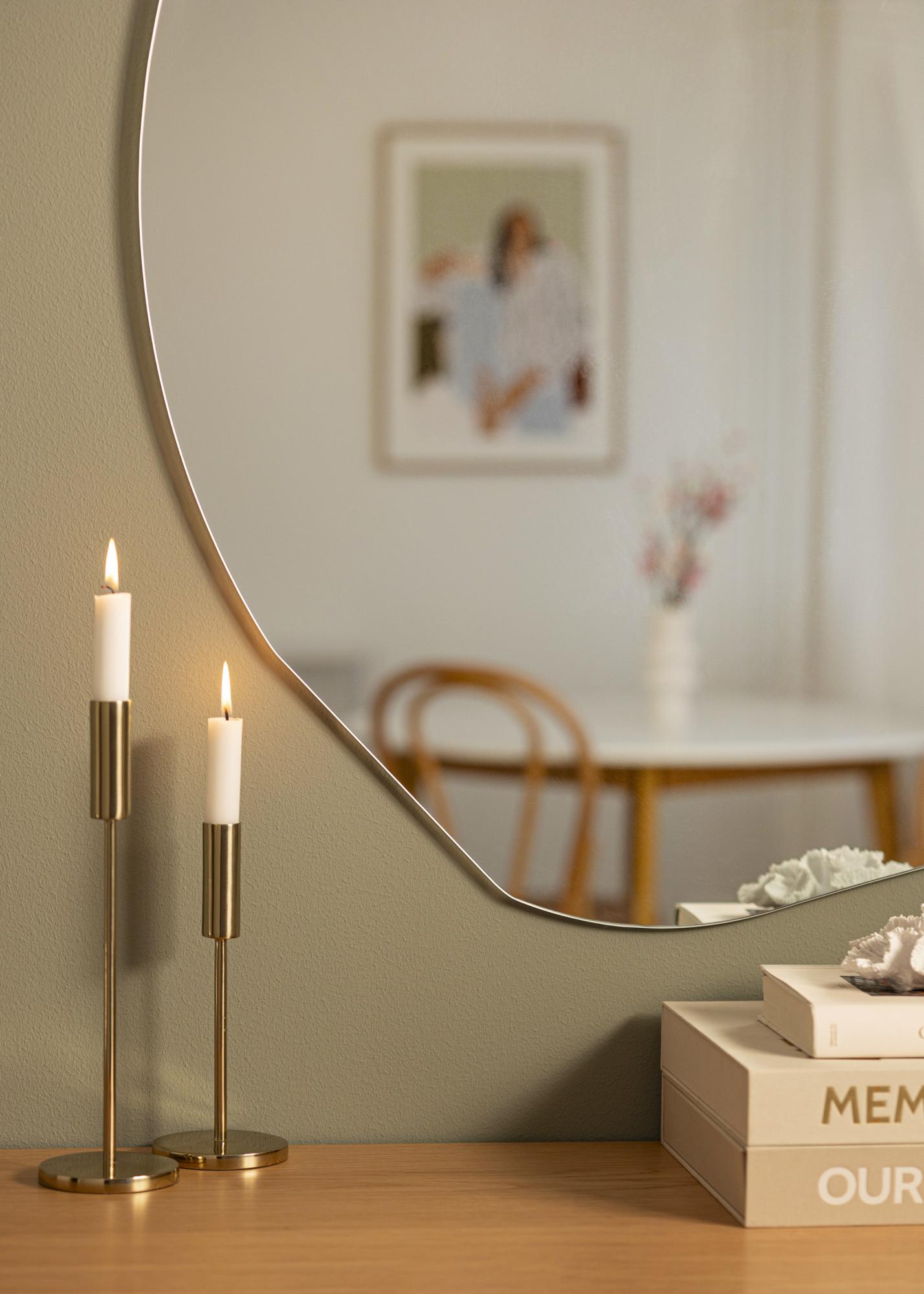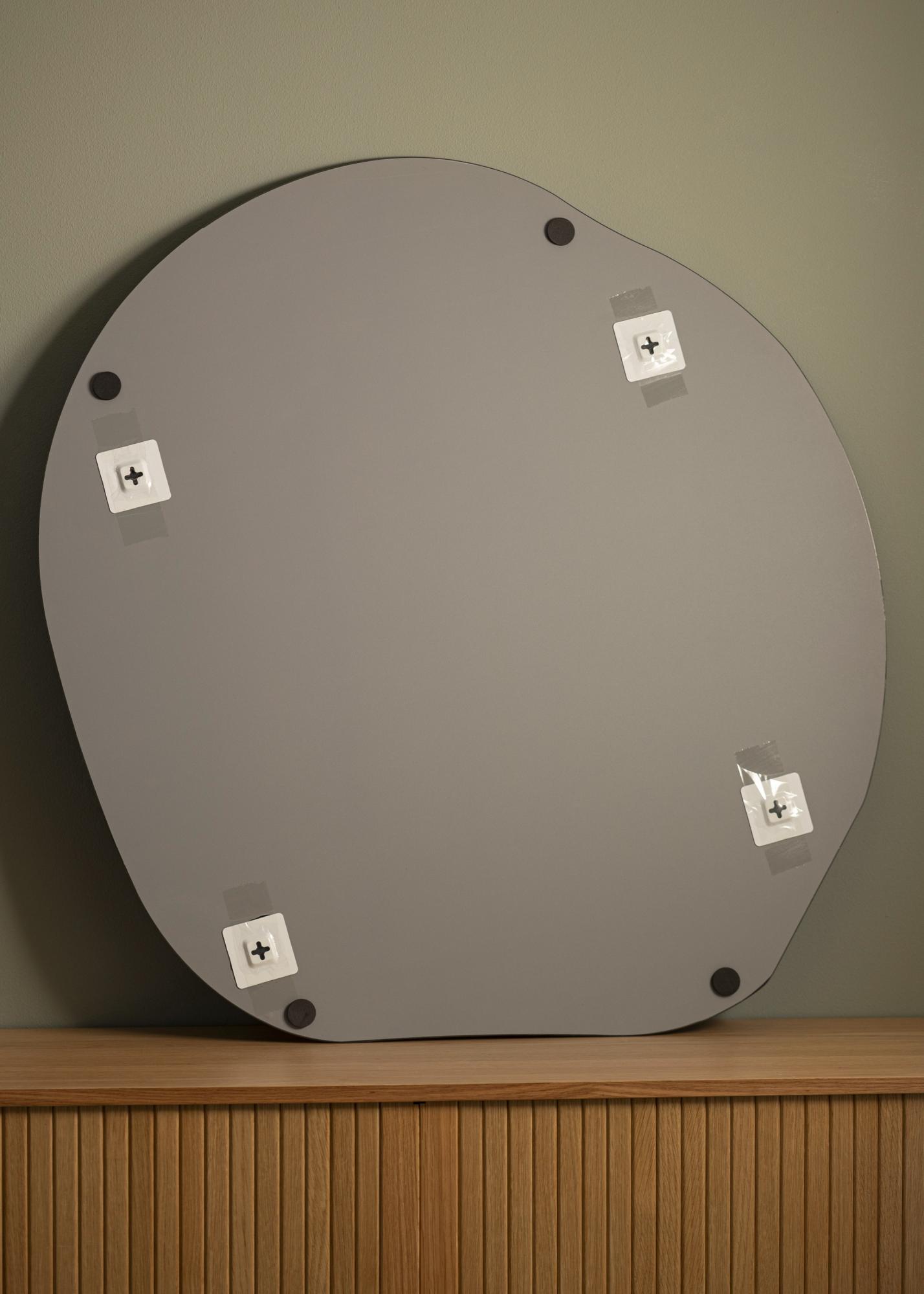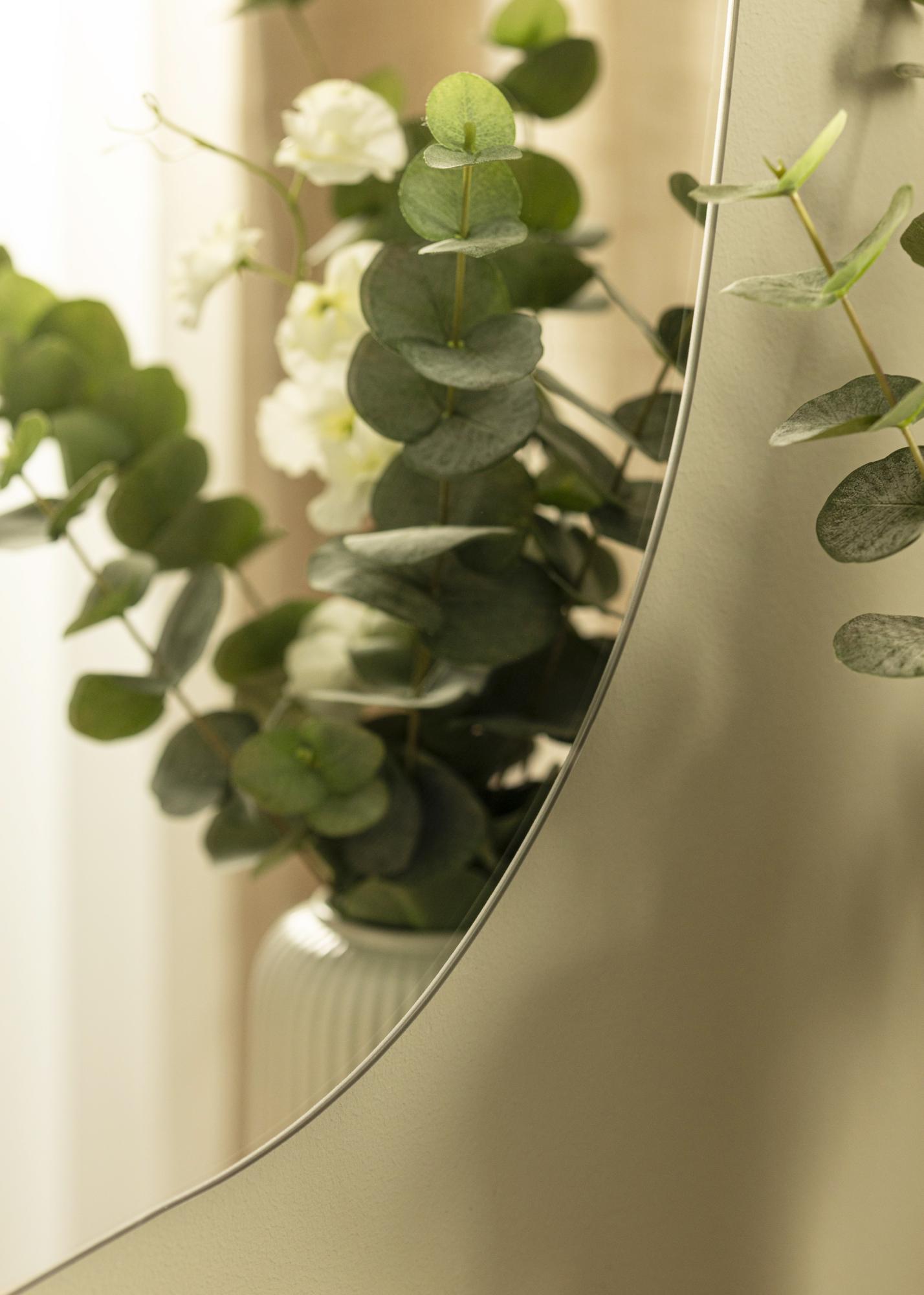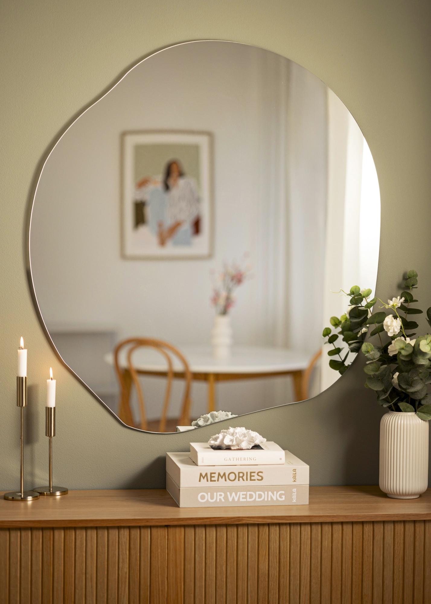 Peeglil on ümardatud, peaaegu orgaaniline kuju koos pehmete, voolavate joontega, mis loovad lõõgastava ja kutsuva tunde. See disain muudab peegli ruumi loomulikuks pilgupüüdjaks ja lisab teie interjöörile elegantsi ja pehmuse tunnet.